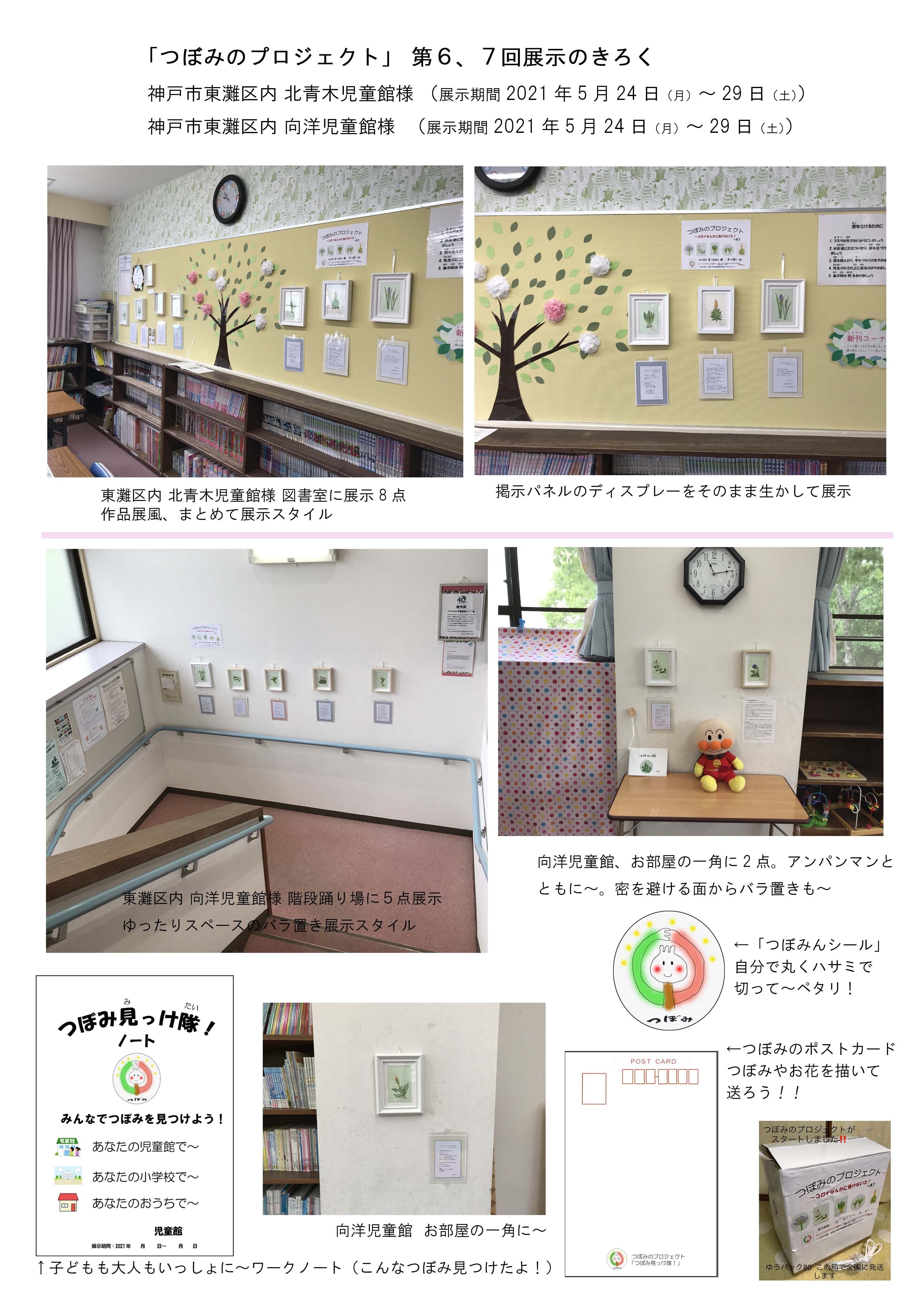 2021年5月3日から始まった「つぼみのプロジェクト」児童館等の展示が7ヶ所目を迎えました。一か所に付き1週間をめどに施設内展示の出前!を進めています。今年は例年にない早い梅雨入りとコロナ感染防止のため、児童館では戸外での活動も制限されていますが、その分つぼみの施設内展示に触れることも多いことでしょう。「つぼみ見っけ隊!ノート」への描き込みも多くなり、つぼみ~草花に対する子どもたちの関心も高まりつつあるようです。人数分(だいたい各所100名ぐらい)用意した、ポストカード紙もおうちの方へ~身近なつぼみやお花を描いて、お手紙として活用して頂くとのお声も頂いています。これから6月にかけて、複数の展示予定を頂いています。神戸市内を中心に作者自身が展示の出前!搬入、搬出作業を実施しています。 蕾芯/立岡記