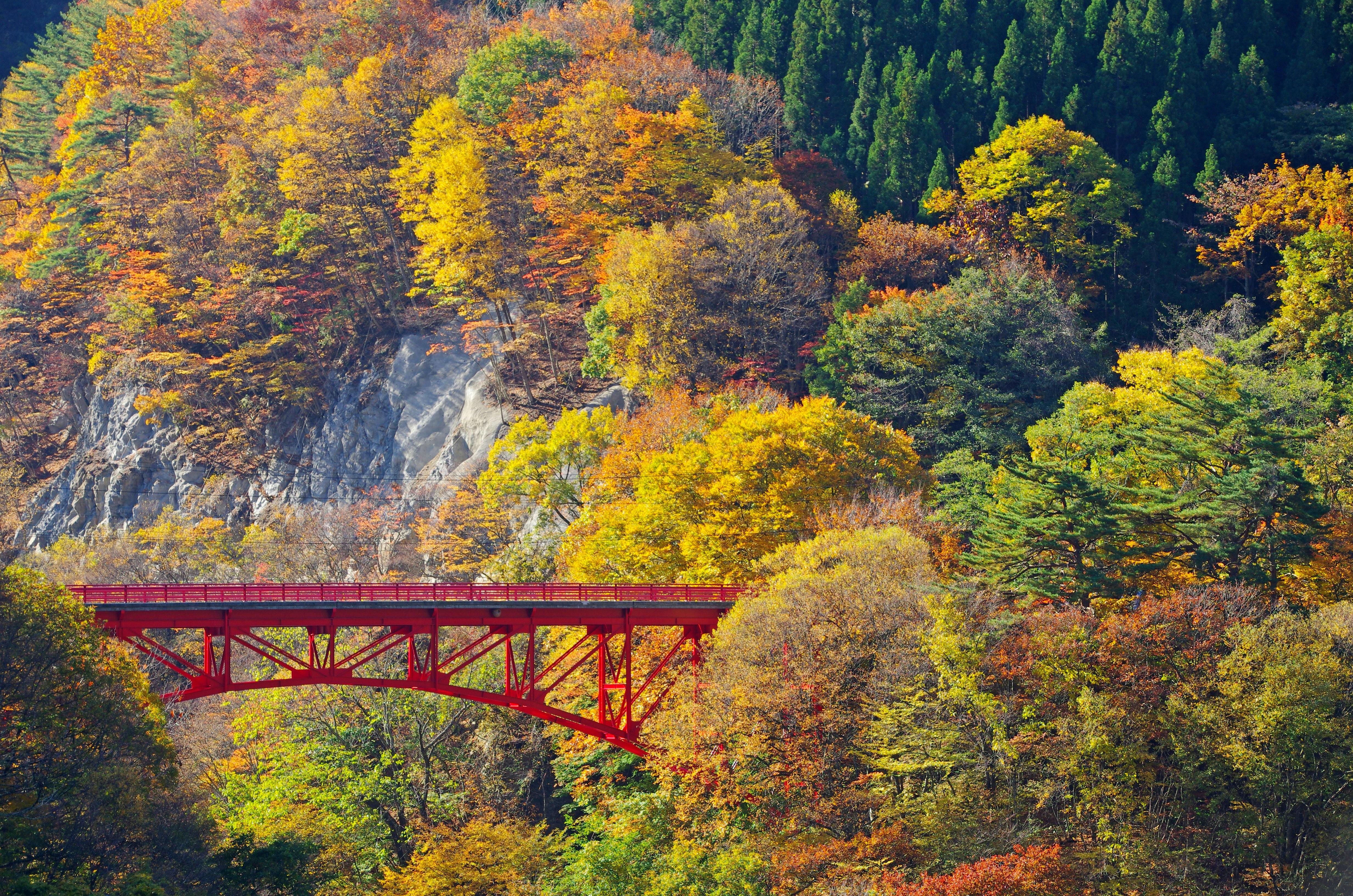 秋には紅葉100選にも選ばれた松川渓谷の紅葉