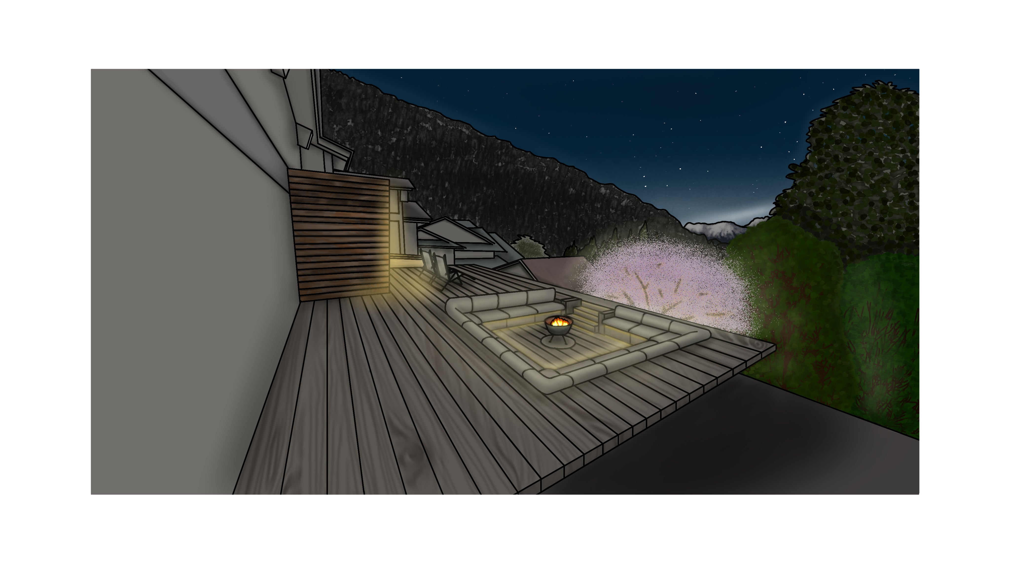 私たちのサウナは高山村を楽しめるように設計されています。