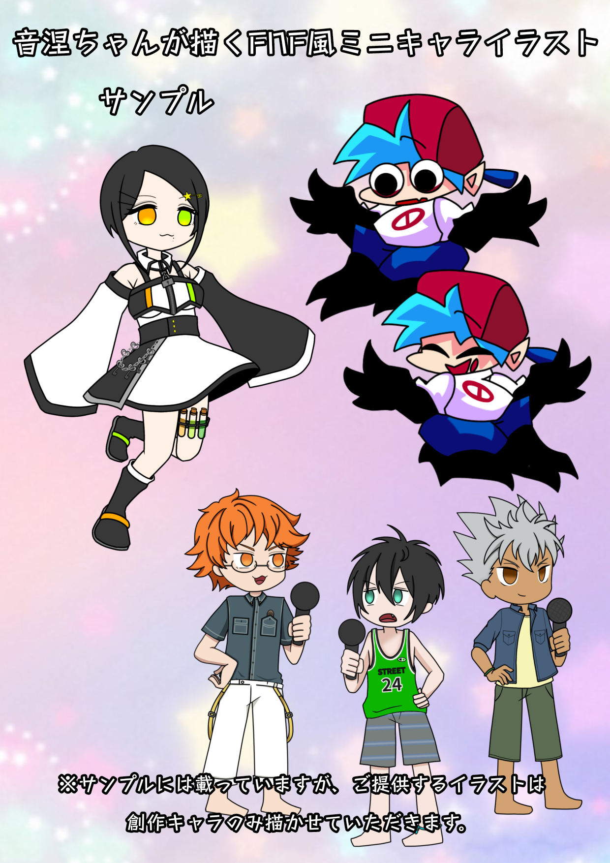 イラストサイズ:A5、A6、B5、B6などからお好きなサイズをお選びいただけます。ご記入いただいたメールアドレスにサイズや描いて欲しいキャラなどをご記入いただくシートを送らせていただきますので、そちらにご記入いただき、そのシートをメールに載せて返信してください。