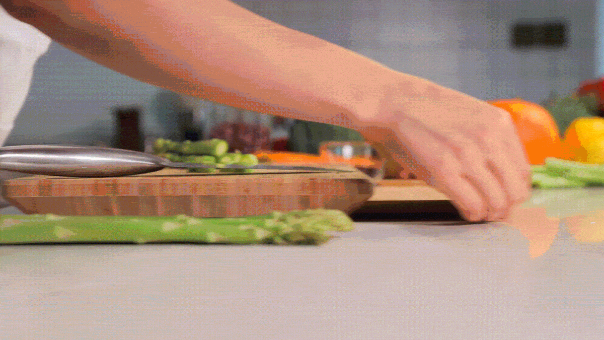 大きなまな板の表面を囲む溝付きですので、あらゆる汁類が流れてテーブルやお洋服または床を汚すのを防ぎます。今まで使ったまな板の中でベストワンにするためのもう1つの小さな機能です。