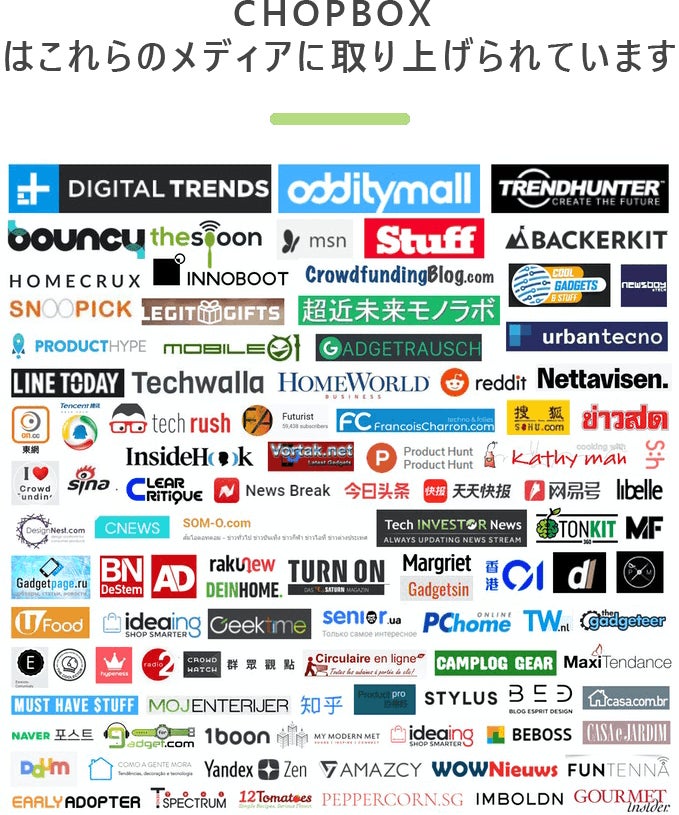 私たちは環境を愛しエコロジカル‐フットプリントへの意識を持ちたいと考えています。ChopBoxは完全リサイクル可能な竹でできており、内部電子部品に関しては簡単に取り外してリサイクルできます。
