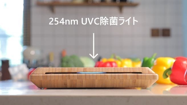 ChopBoxに内蔵されている254nmUVC除菌ライトは小型で角度が制限されており2枚の板と板の間の小さな隙間へ差し込むように使用します。このライトの周辺及び近くにいる全ての人にとって安全です。このUVC除菌ライトは2枚の板を引き離すと自動的にオフになりますが、コントロールパネルの2番目のボタンを押してオフにすることも可能です。