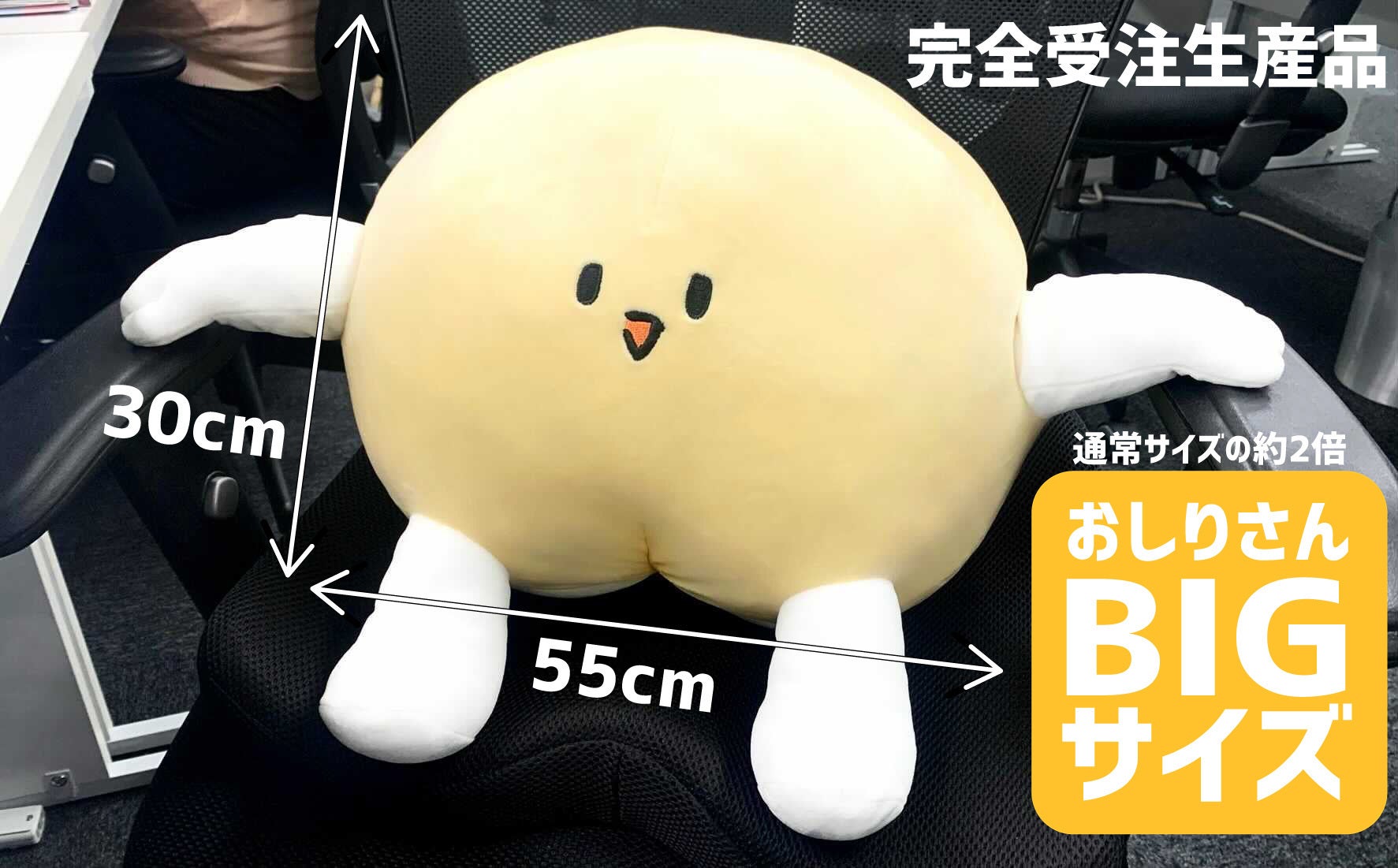 おしりさんのふわっふわの触り心地はそのまま、約2倍の大きさにしたBIGなぬいぐるみリターンです!