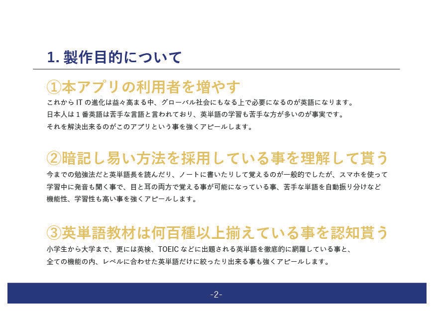 それを解決する英単語アプリが有ると想定して企画書の製作をしています。