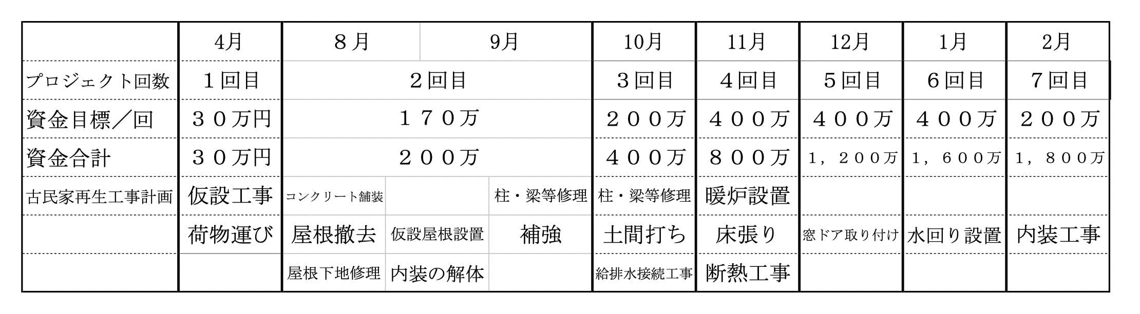 再生費用1,800万まで資金調達にチャレンジし続けます。