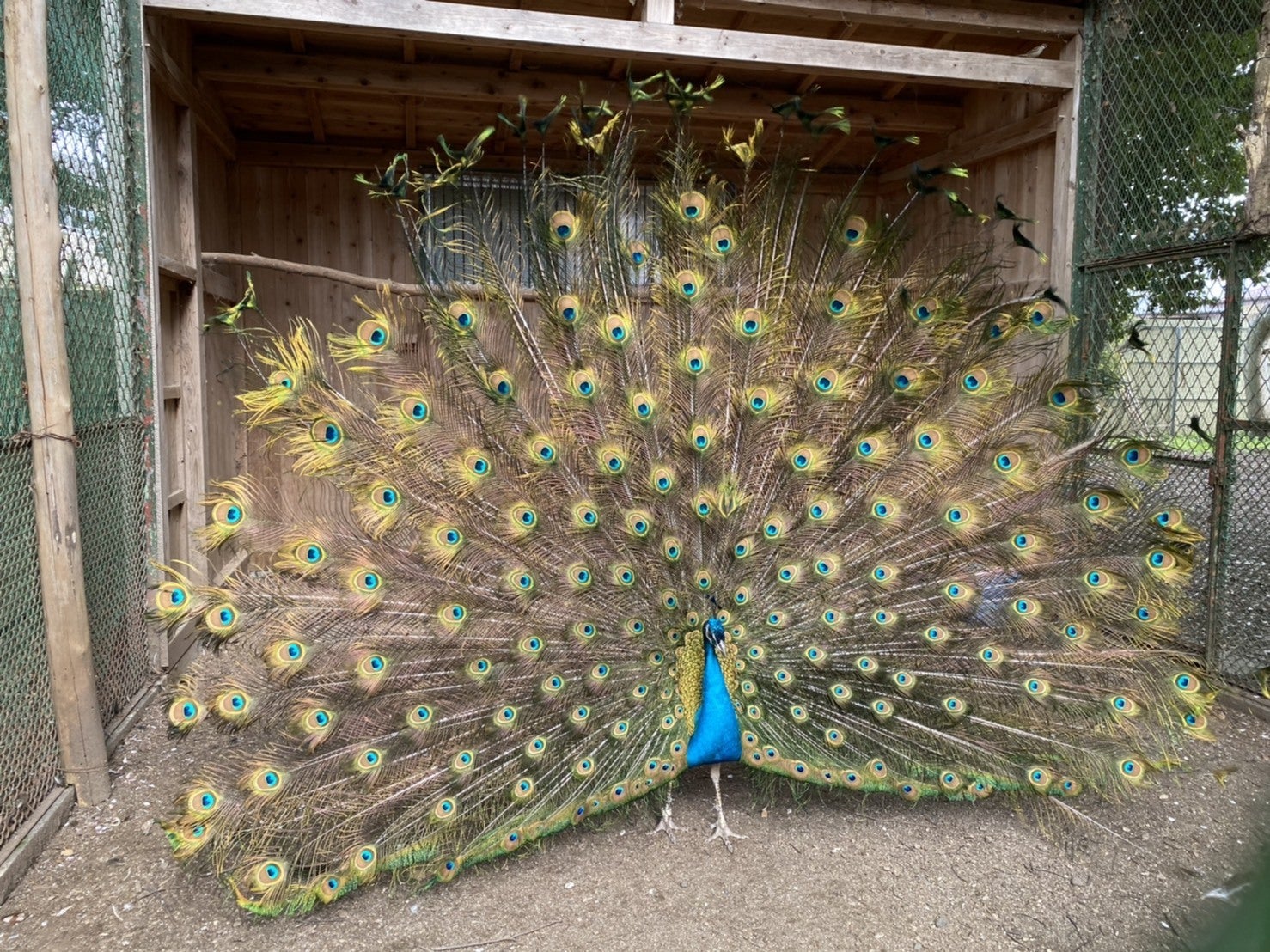 孔雀は旧皇族の朝香宮鳩彦殿下より御下賜戴いた末裔だそうで、戴いた3羽の孔雀は歴代宮司や地元の方により大切に育てられ、現在では20羽近くまで増えているそうです。