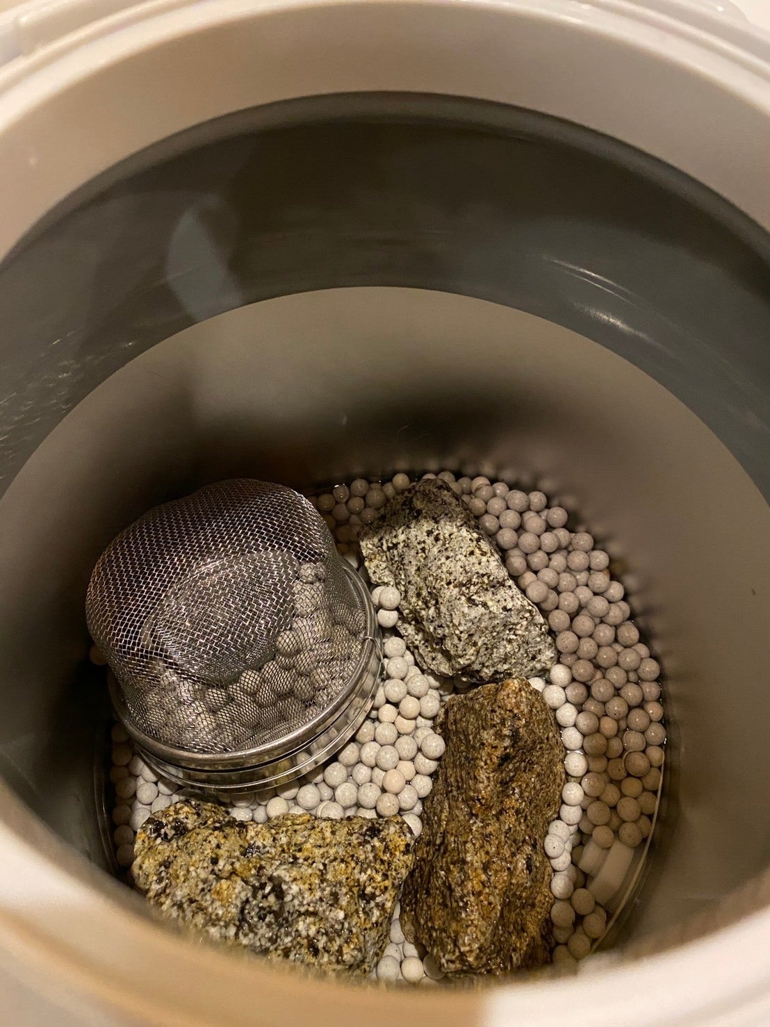 ラジウム鉱石(自然鉱石)から放出されるラドンは少量ずつ発生するため、しっかりと溜め込める空間が必要となります。