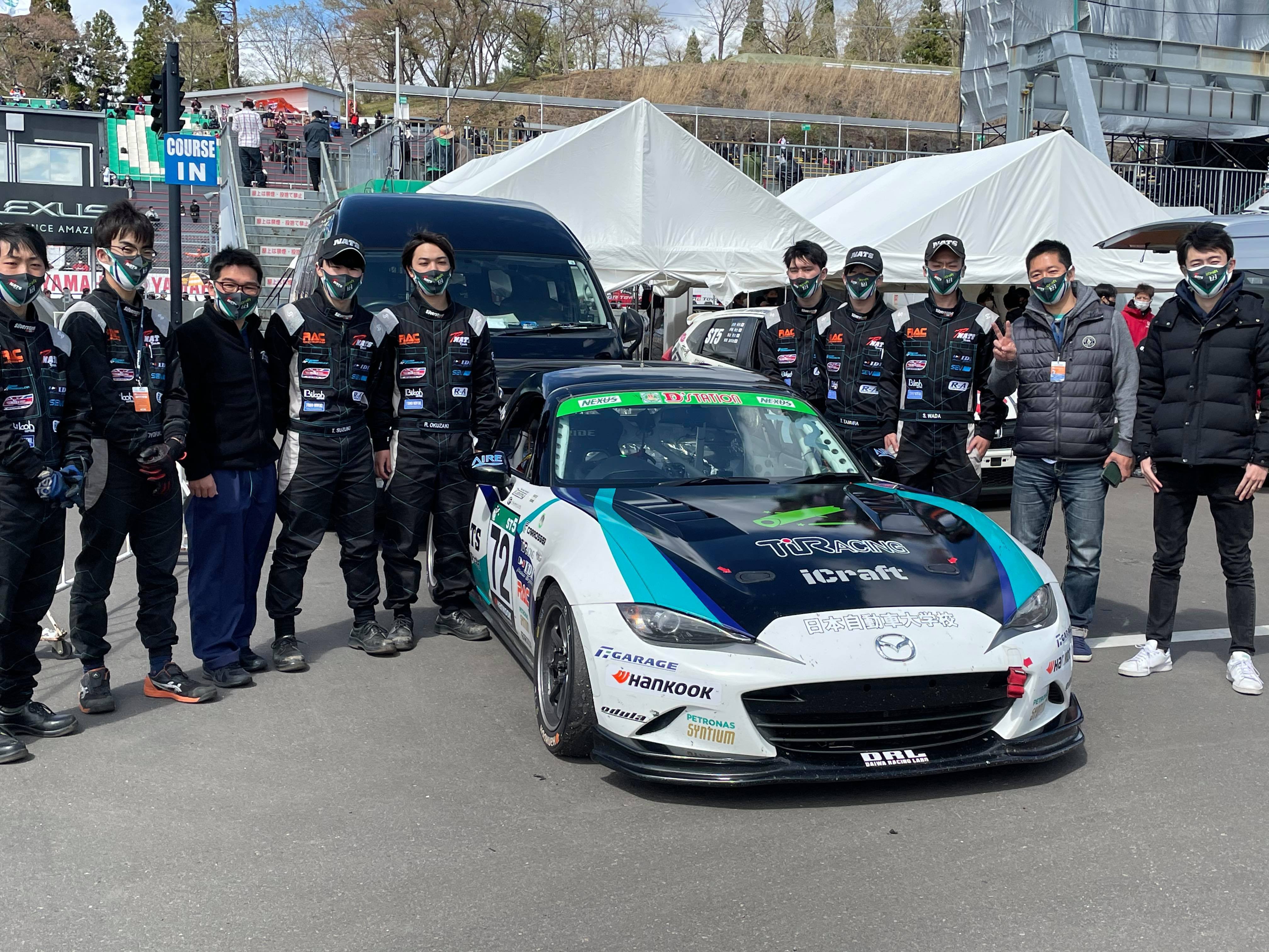 4月17日、18日の2日間で開催されたS耐SUGOラウンドは、土曜の予選は雨天で開始され、2位に1,9秒差で1位。チーム初のポールポジションを獲得できました。明けて日曜日は前日とうって変わり快晴のドライコンディション、午前8時半より3時間の決勝がスタートしました。序盤から2位の車両とのマッチレースとなり、3位以降を大きく引き離す展開。エースドライバーの金井亮忠選手のテクニックに助けられ20分過ぎまでは1秒以内の膠着状態でした。が、我々は3時間タイヤ無交換作戦を計画していたので、一旦2位の車を前に出す事に作戦を変更。そのまま一進一退の状況で3時間を迎えるころには、タイヤ無交換作戦もトップ奪取する所までは機能せずにそのまま2位でゴールとなりました。日本自動車大学校NATSの生徒達も、去年までの学生と全員が入れ替わり、サーキットを初めて来たという学生もいます。そんな中、必死で作業に打ち込んでくれる姿には、いつもながら私達がパワーを貰う事しきりです。そんな彼らですが、シーズンが終わるころにはきっと別人の様に逞しく成長してくれると思います。次の富士24時間レースはシリーズ最大の山場となります。私達と学生達でチーム一丸となり初優勝を獲得できるよう、引き続きご支援並びに応援をよろしくお願い致します。iCraft 猪爪俊之
