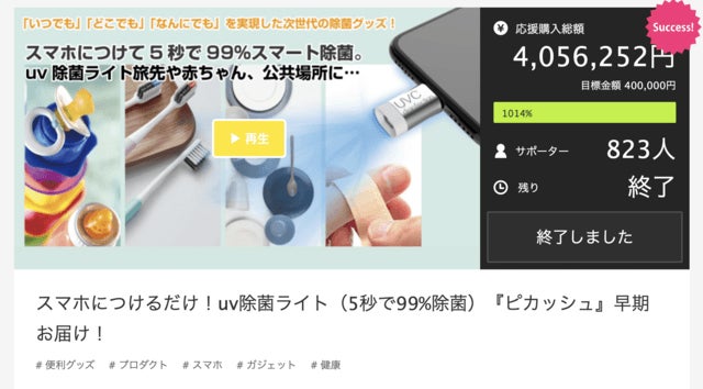 今ほど除菌への関心がなかった2018年に、マクアケ社で
