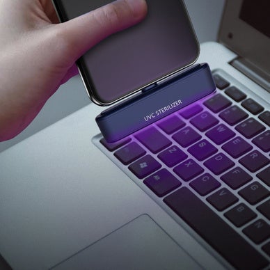 ①充電・電池入らず!スマホが除菌アイテムに!