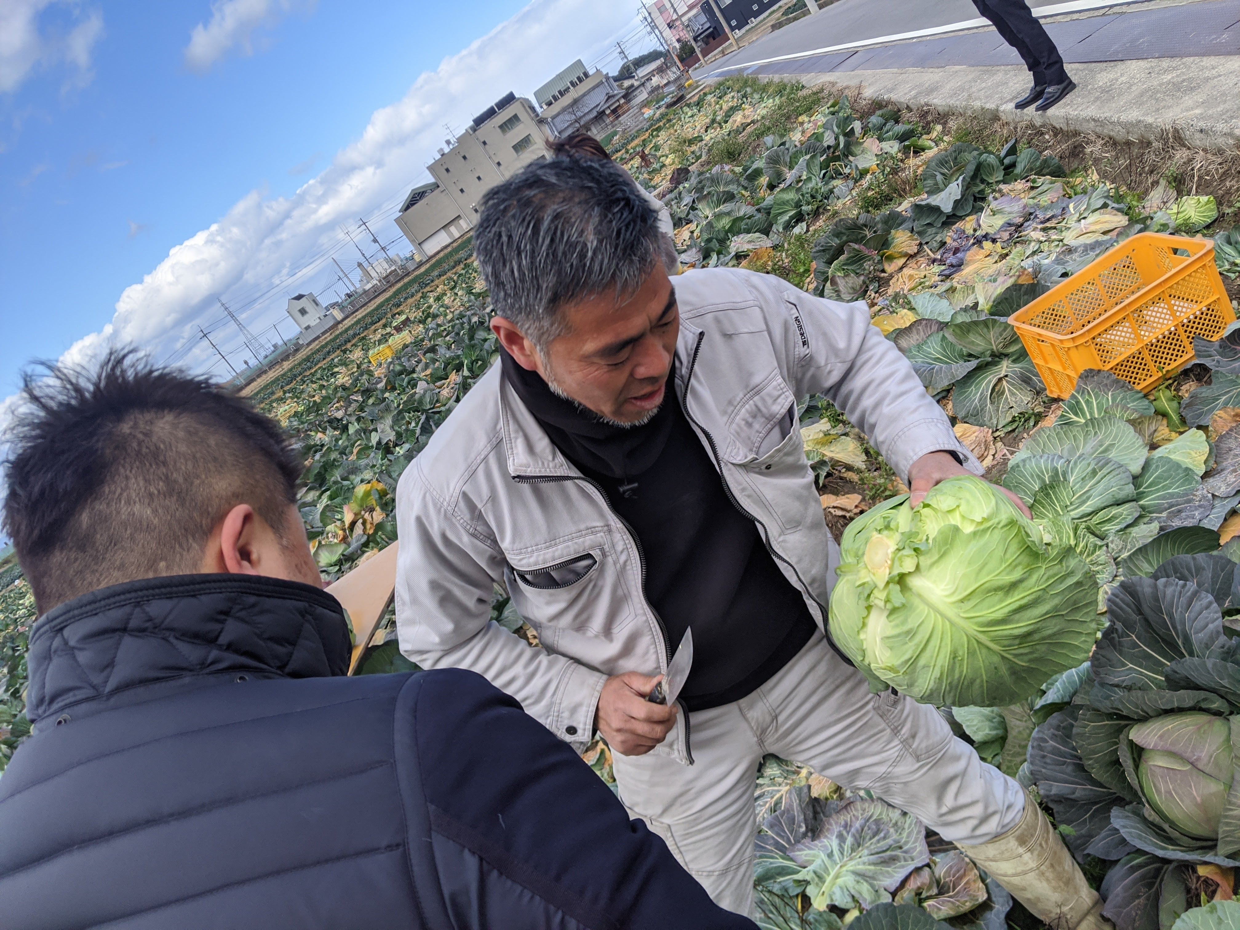 泉州射手矢農園でのキャベツの収穫