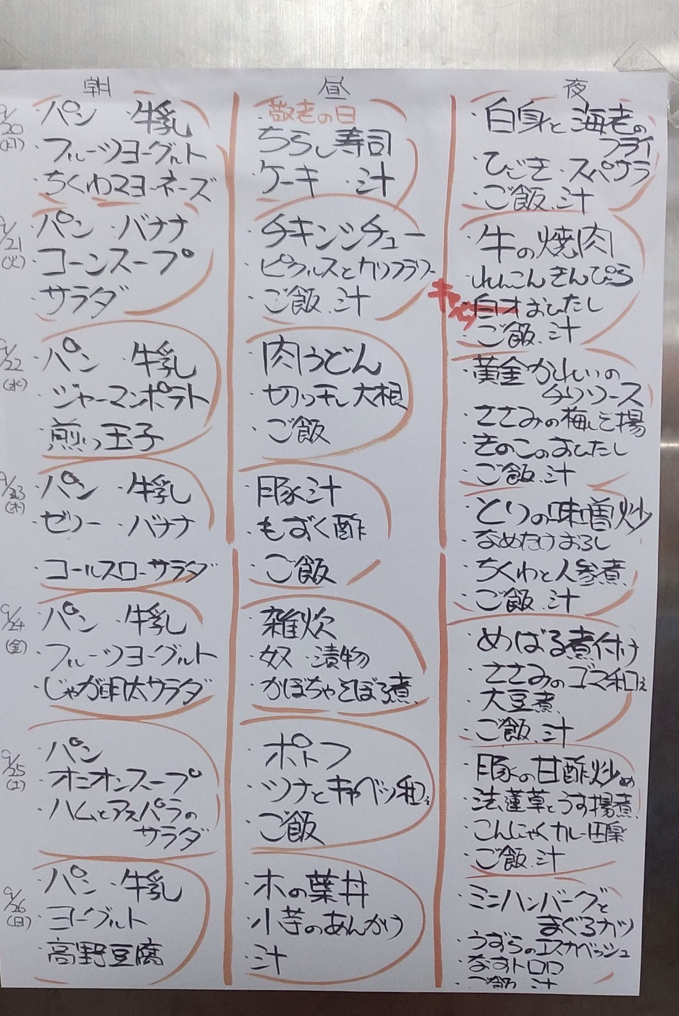 手書き献立