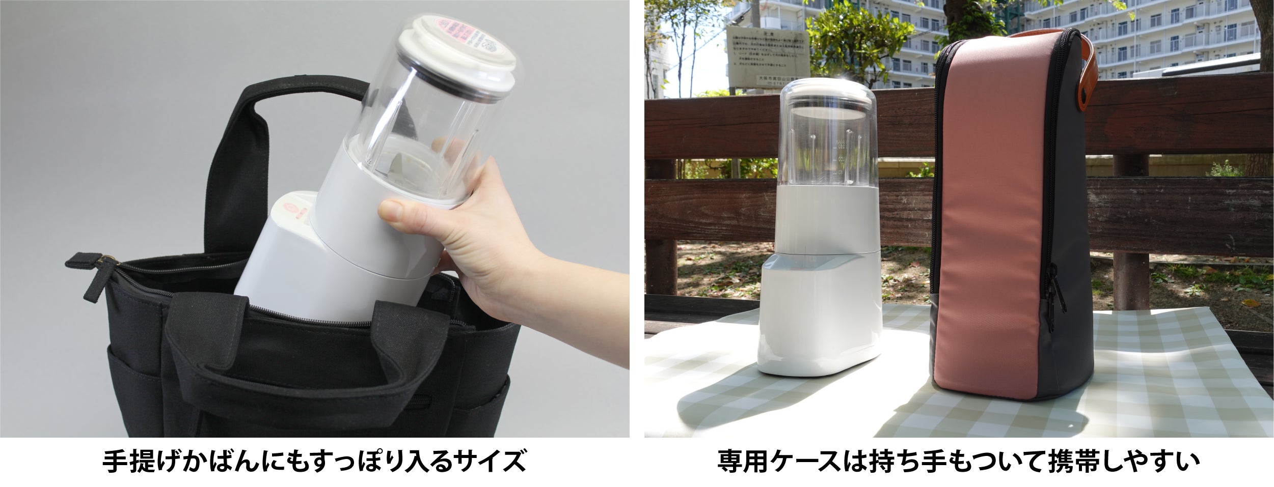 このブレンダーがあればコンセント無しでその場で調理出来るので、