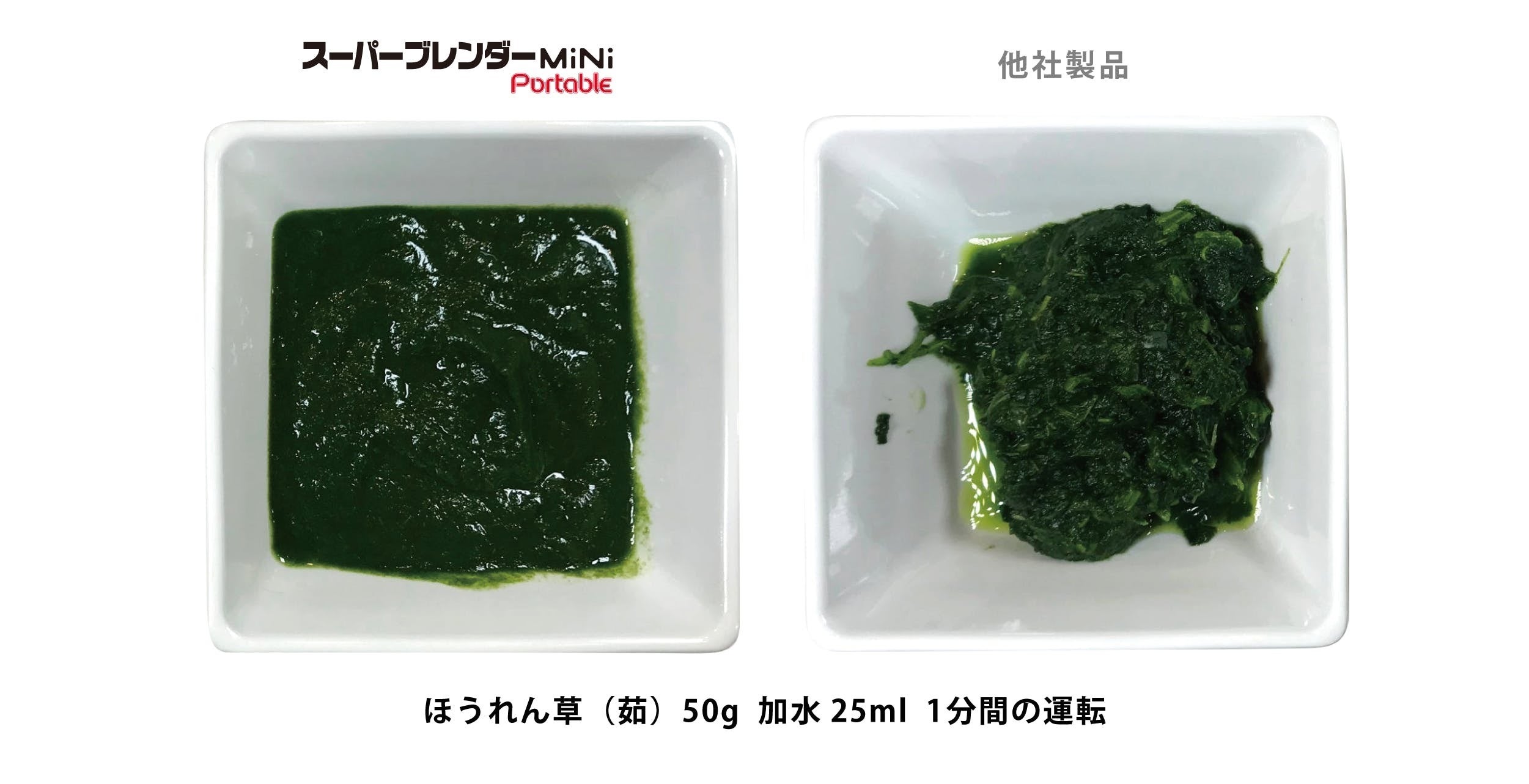 他社製品との比較でも明らかですが、繊維が多い葉物野菜も 少ない加水量で