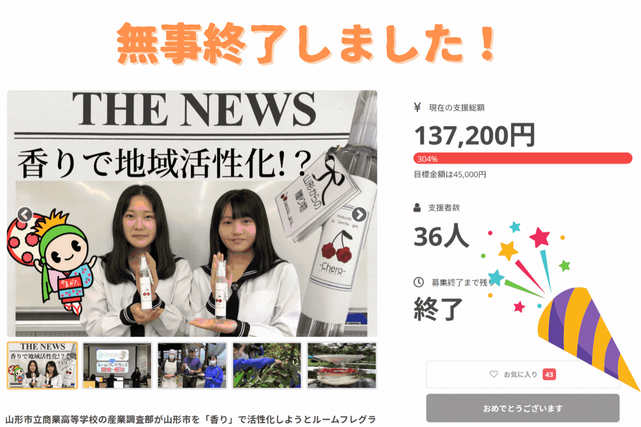 皆様、この度は私たちの取り組みをご支援いただき誠にありがとうございました。