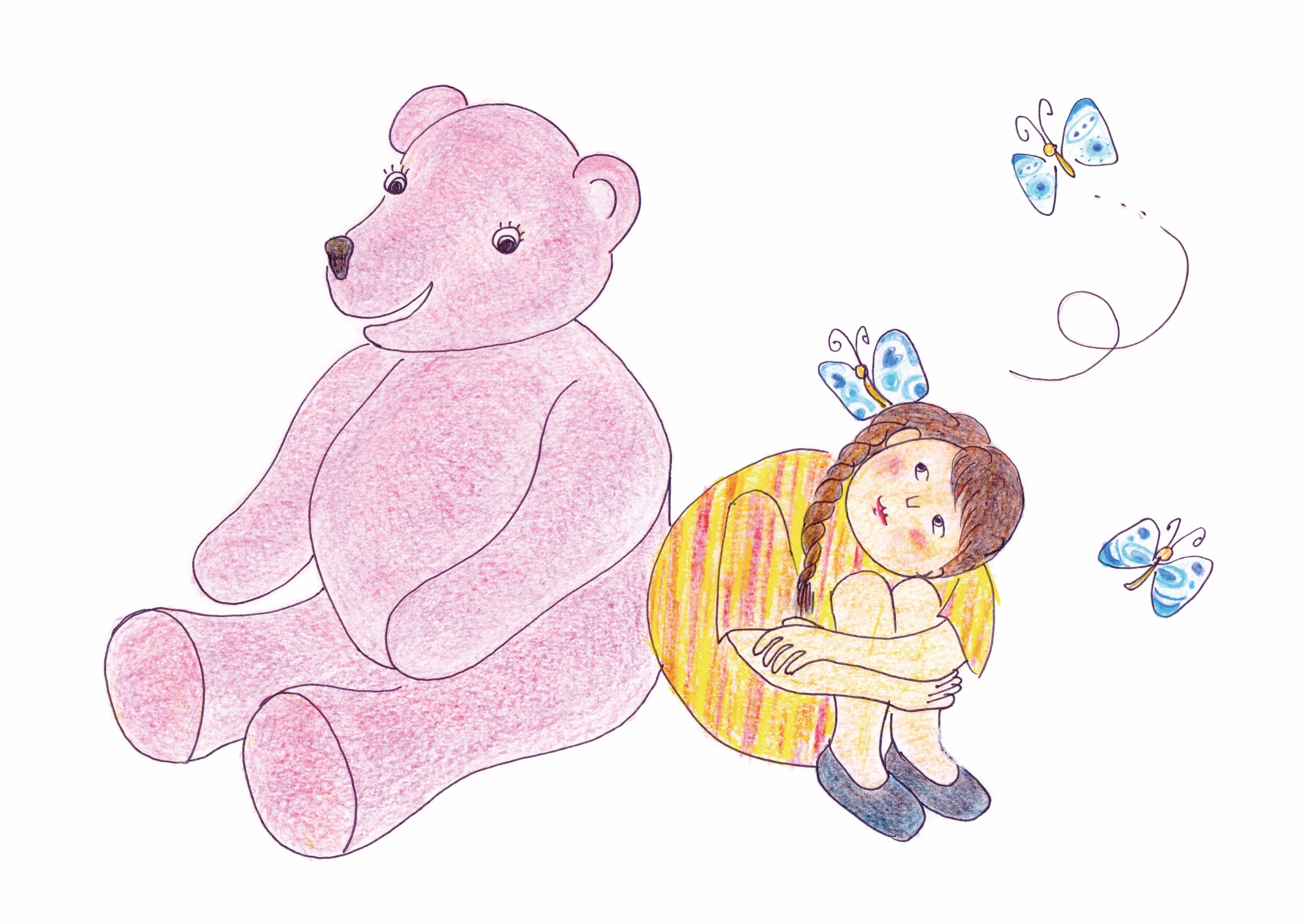 最初にmomoさんから届いたのは、子どもたちが休んだり遊んだりする権利にかかわる項目2を絵にしたものでした。ピンクのくまのそばでくつろぐ女の子を見て、私自身がホッとした穏やかな気もちになりました。もし、これが絵本になったら、こんなふうにホッとする時間を子どもにも大人にも届けられるかもしれない…そんなふうに思いました。