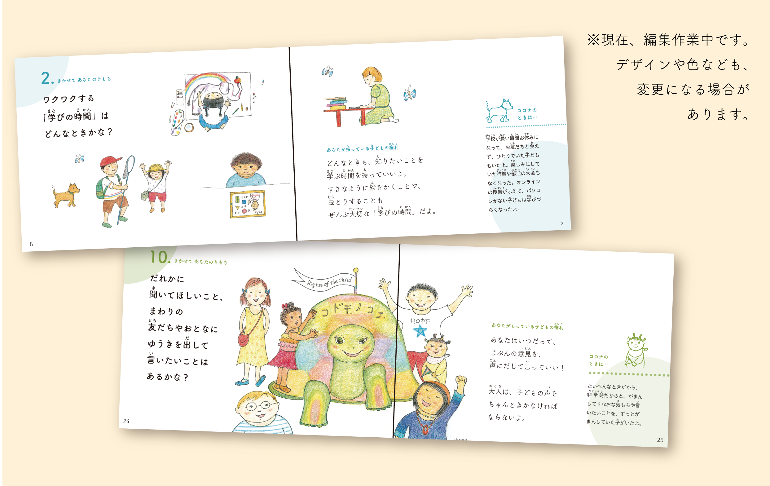 新版の絵本は、権利が制限されたときに出された国連声明という特徴を踏まえ、コロナが収束した後でも参照できるよう、非常事態時において大切にされるべき「子どもの権利とは何か」という点に着目しています。