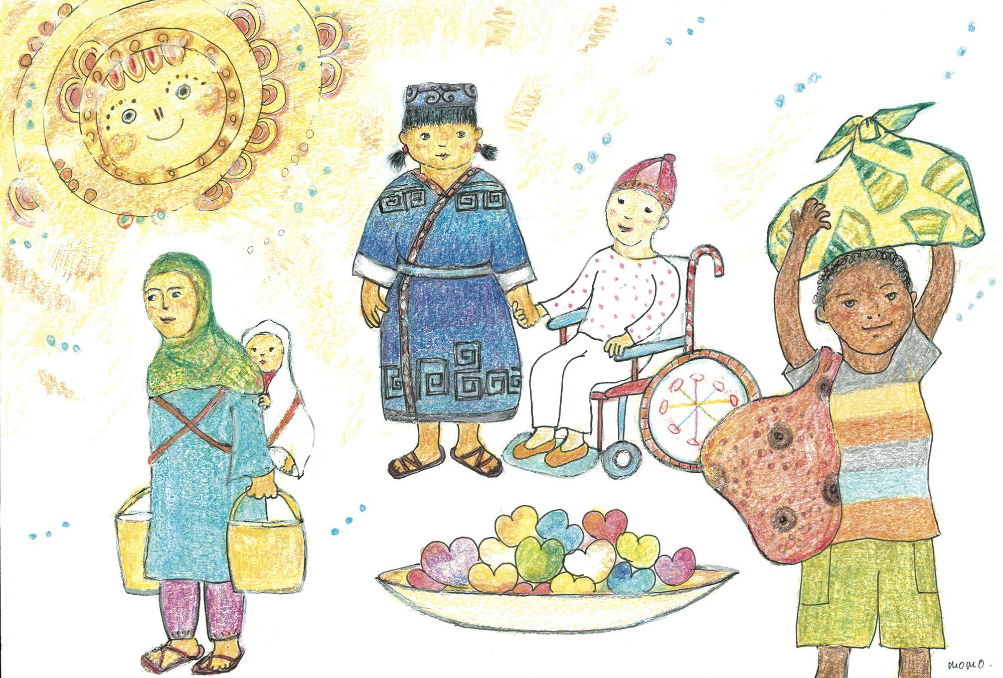 A .ありました!これまでは、身近な人の絵を描いてきましたが、今回は世界の子どもたちを描くということで、新しい挑戦でした。海外の子どもたちを描くにあたり、写真や本、映像などたくさん見ました。当たり前ですが、目や肌の色、目の大きさや眉の太さ、鼻の形、着ているもの、本当に違うのだなーと思いました。どう違うのか、どう描くと違って見えるのか、研究しながら楽しく描きました。私は、絵を描き始めると没頭してしまうで、家の人がいない時や寝ている時に集中して描いています!