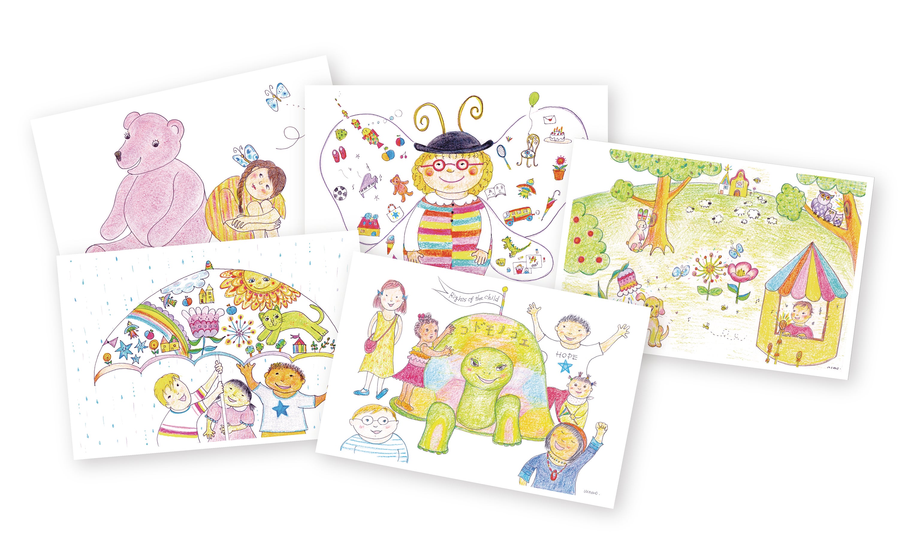 絵本の中に使用している絵のポストカード5枚セットをお届けするコース