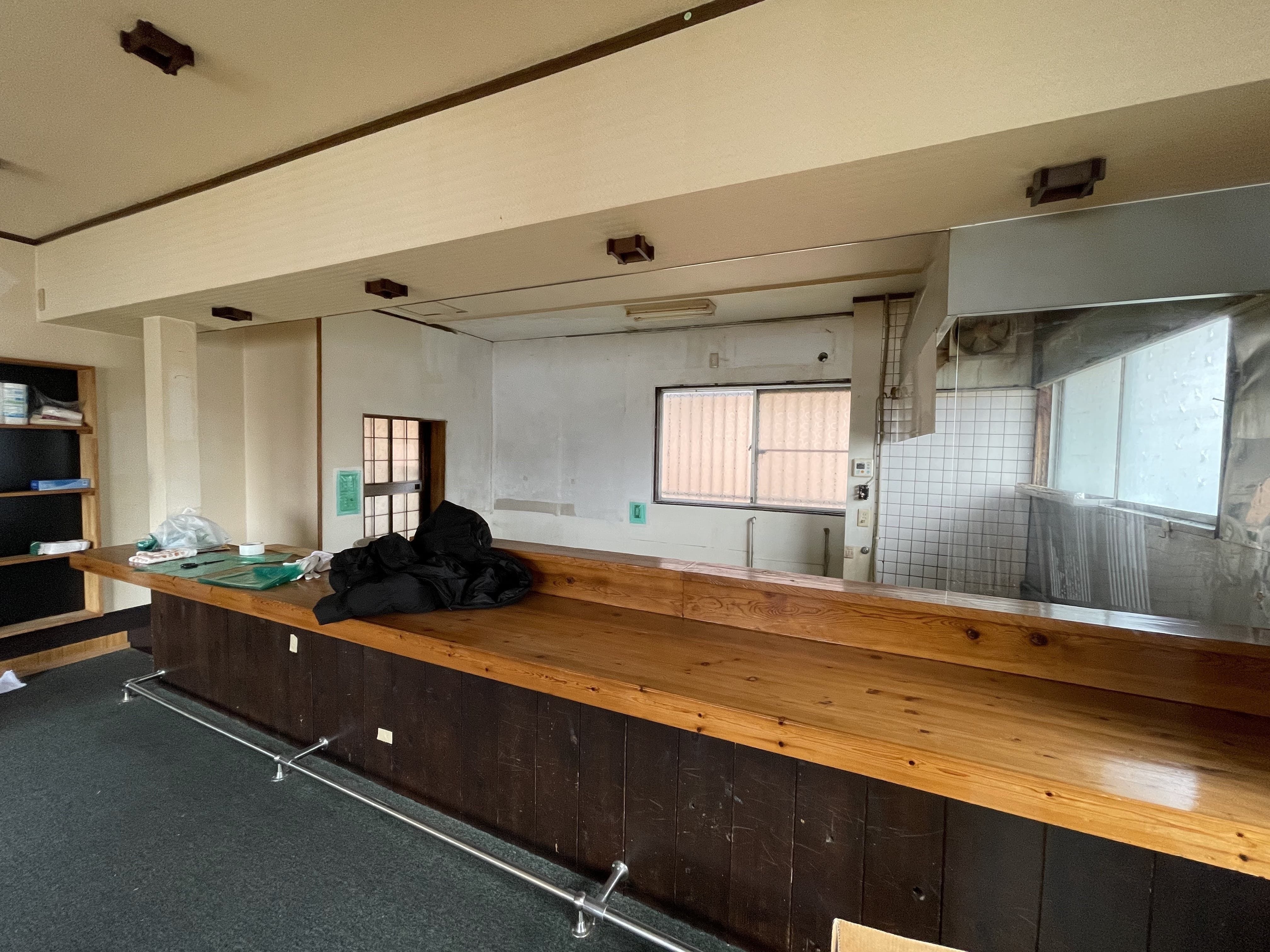 オープンに向けて現在、ガス・水道・電気以外、資金節約のため自分達で店舗の改装を行っています。