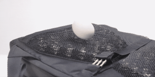 背面のバネとそれを包むメッシュ素材のカバーによりバッグと背中の間に空間を確保しました。