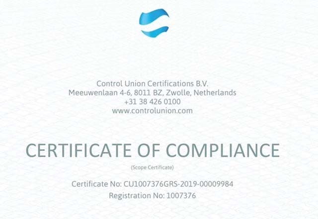 RiiTURNは世界的機関であるControl Unionの認証取得済のRPET生地を使用しています。