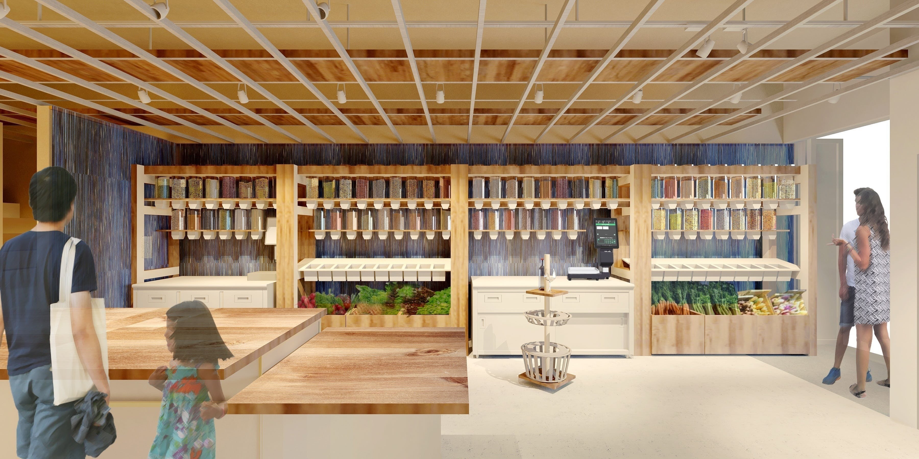 ゼロウェイスト・スーパー「斗々屋」の内装設計は、建築クリエイティブスタジオNoMaDoSさんが引き受けてくださいました。NoMaDoSさんとのお付き合いは、昨年の夏、NoMaDoSが開発・運営する、都市生活におけるサステナブルなアクションを応援するためのアプリslowzから取材依頼をいただいたことがきっかけで始まりました。そこから半年ほどかけて、「地球と人間が共存できるこれからの都市と生活を生み出すこと」を目指して活動されているslowz、そしてそれを建築・都市から実験されている/NoMaDoSの皆さんとの交流を深めていき、一緒にゼロウェイスト・スーパーを創るパートナー関係へと発展していきました。