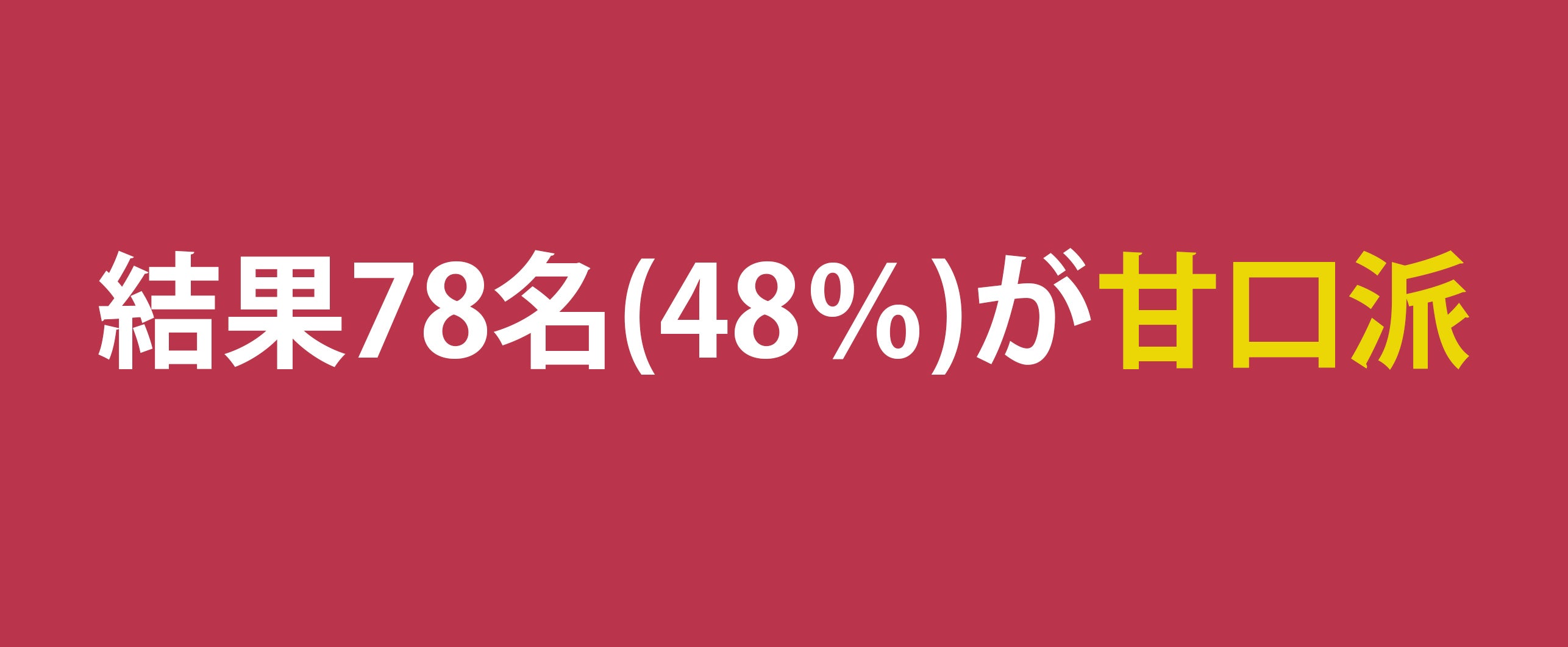 つまり、中辛派67名のうち、控えめにみて、30名の方は潜在的甘口派といえるでしょう。