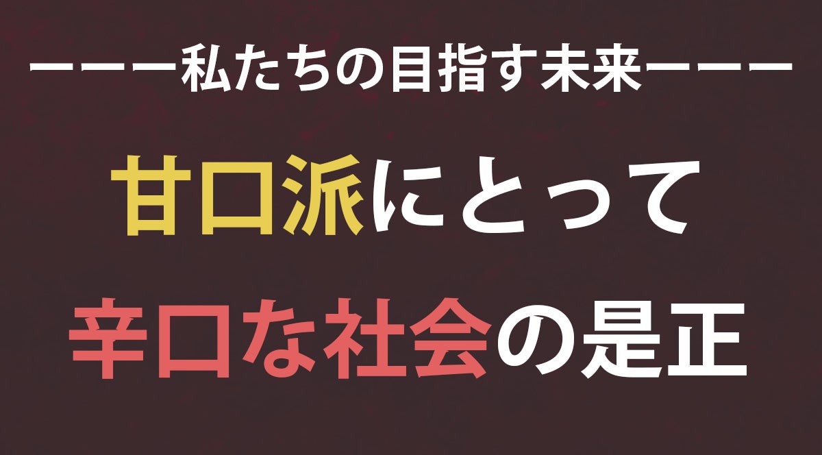 本プロジェクトの最終目標は、「甘口派にとって辛口な社会の是正」です。
