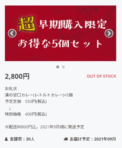 おかげさまで【これぞ!漢の甘口カレー】超早期限定品が完売いたしました!ありがとうございます!(涙)