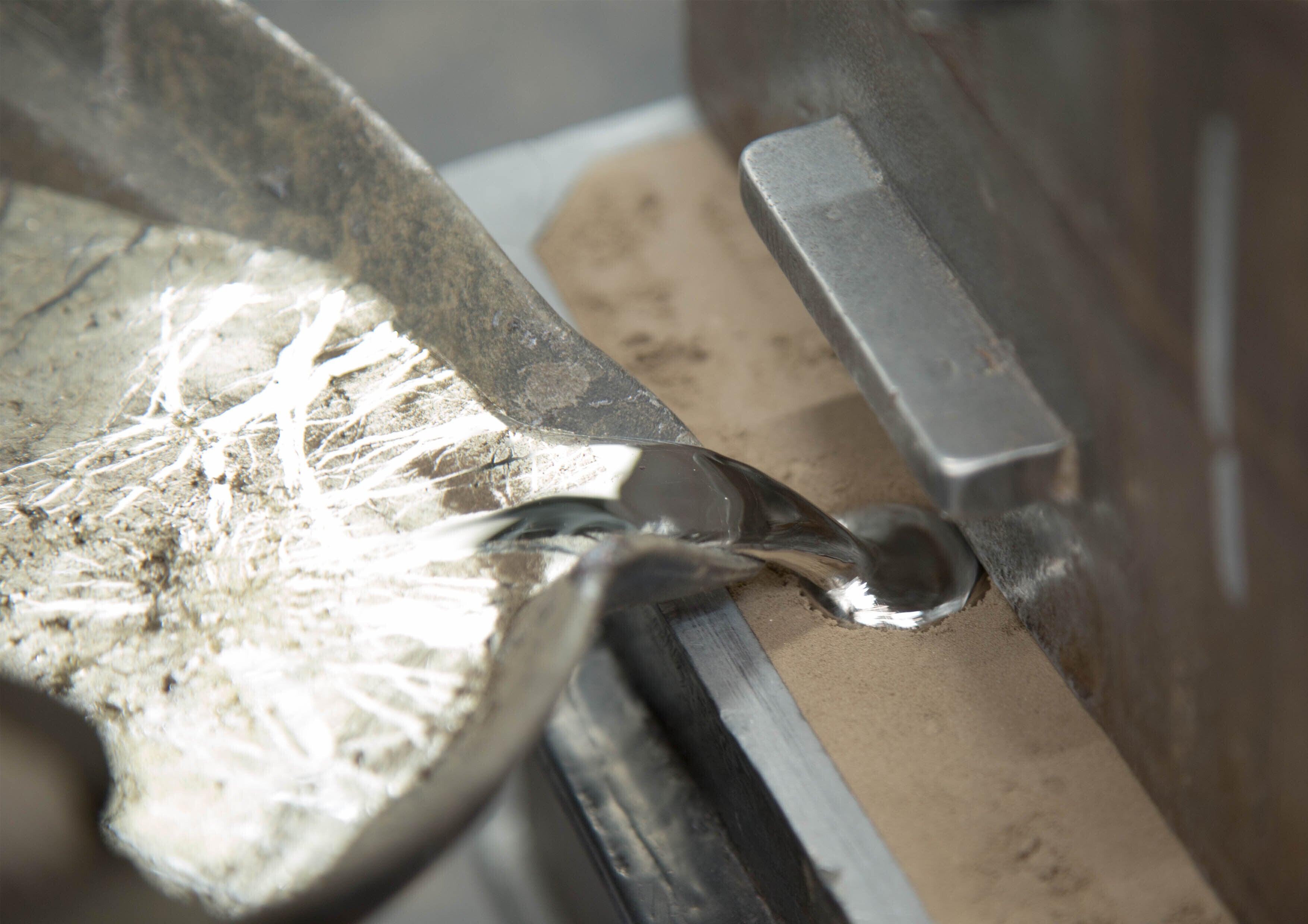 株式会社 能作は大正5年(1916)、この高岡の地に400年伝わる鋳造技術を用いて仏具製造を開始しました。鋳造とは、溶かした金属を型に流し込み、冷やして目的の形状にする製造方法をいいます。金属を流し込む型を鋳型(いがた)、その型から取り出してできた金属製品は鋳物(いもの)。能作は、素材特性を引き出すべく 様々な鋳造方法・加工技術を用いることで 鋳物の可能性を拡げ続けています。