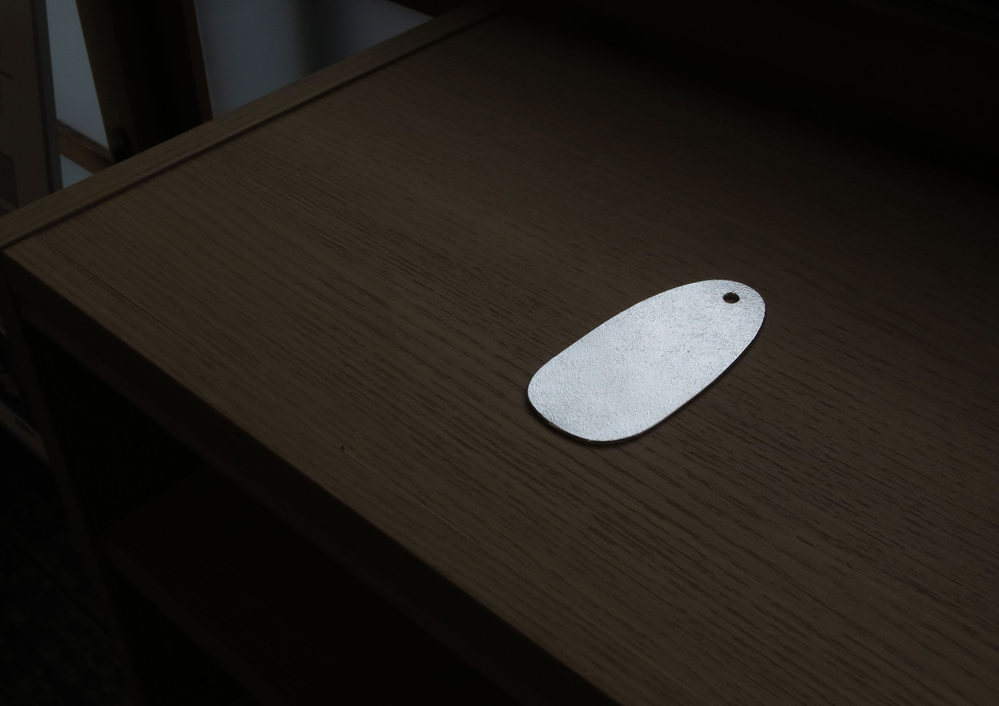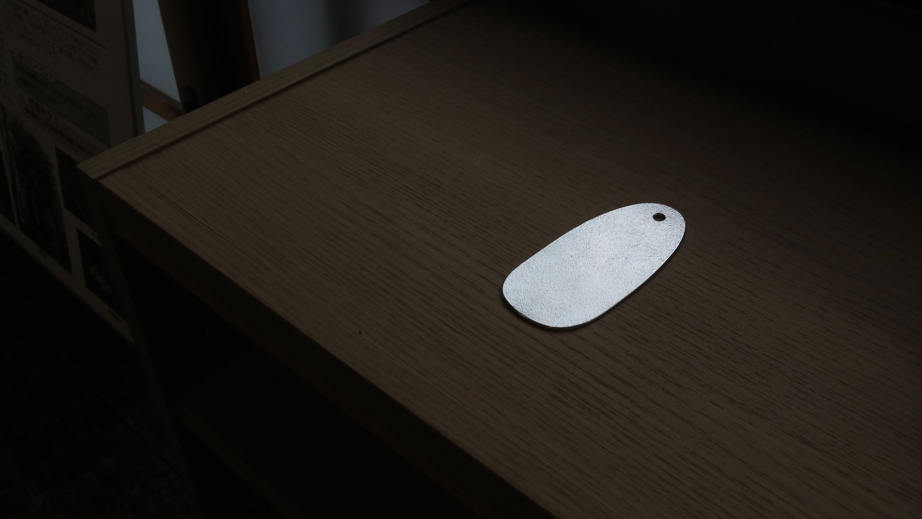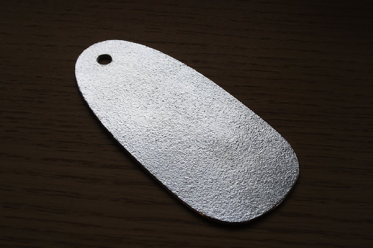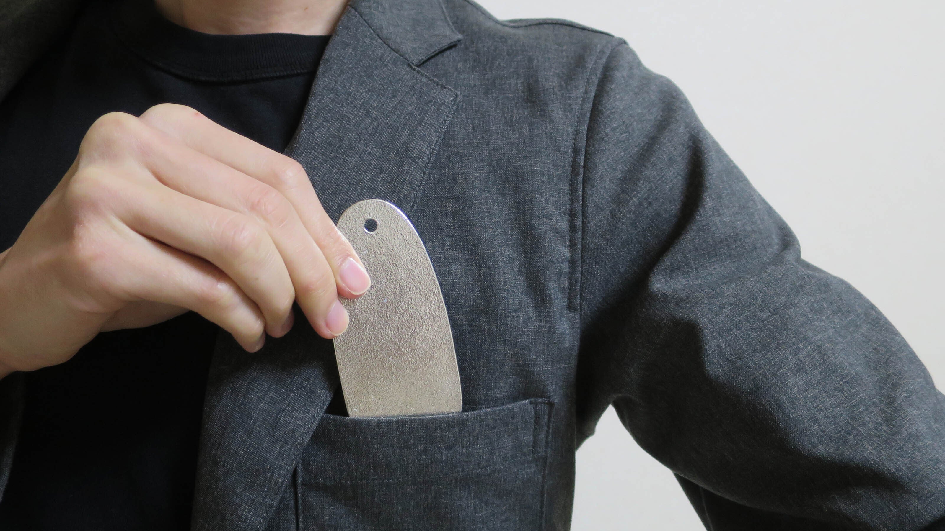 全長10cm・薄さ1.5mmと携帯しやすく、胸ポケットやバッグの中でも邪魔になりにくいです。シンプルなデザインが、素材の美しさをより引き立てています。