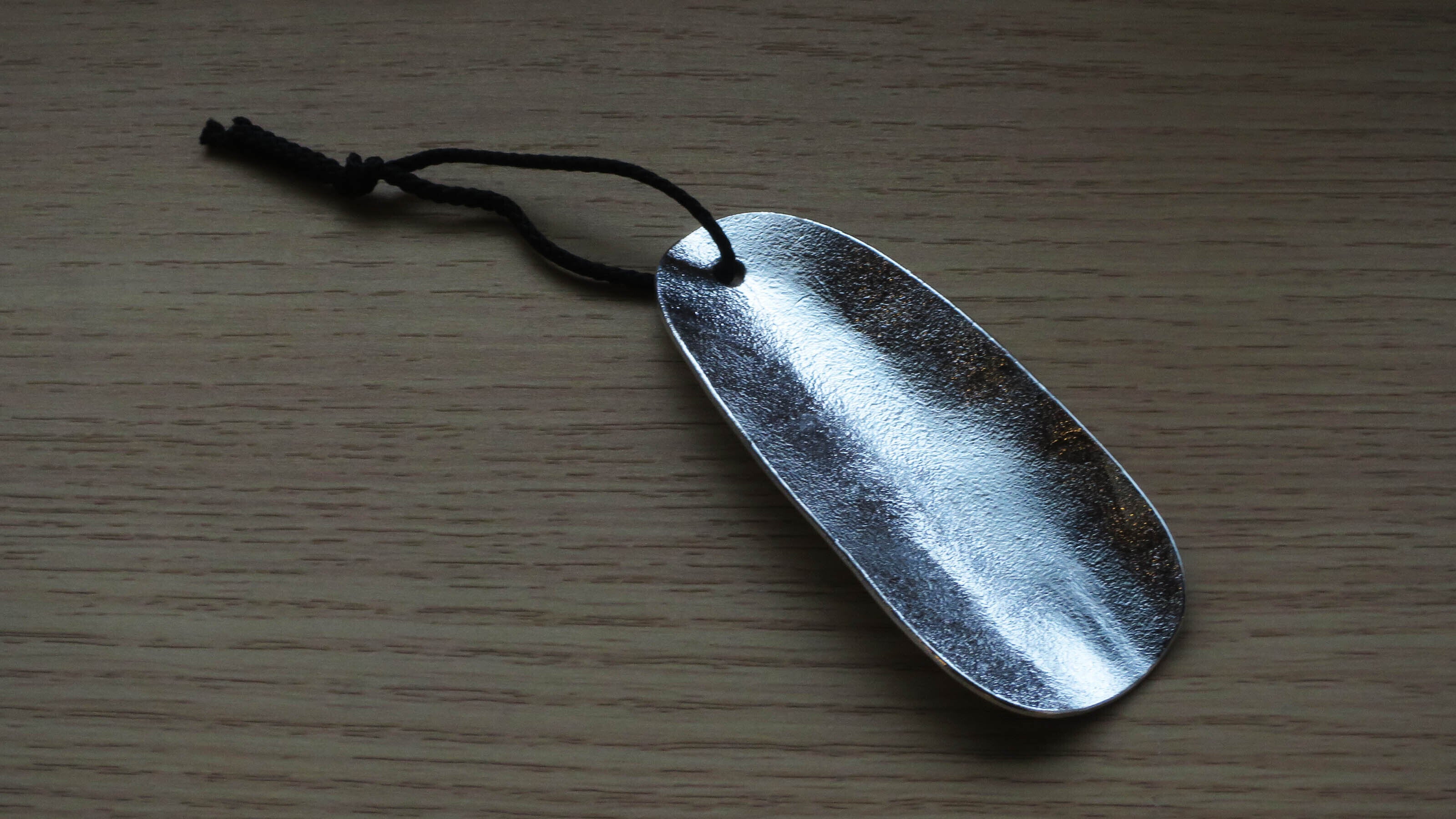 靴や足に合わせて、自由自在に形を変えることができる靴ベラ。素材である純度100%の錫は金属ながら柔らかく、手で変形できます。