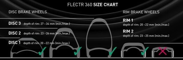 FLECTR 360 OMNIは最大32本のスポーク、リム直径24インチを超える自転車に使用可能です。