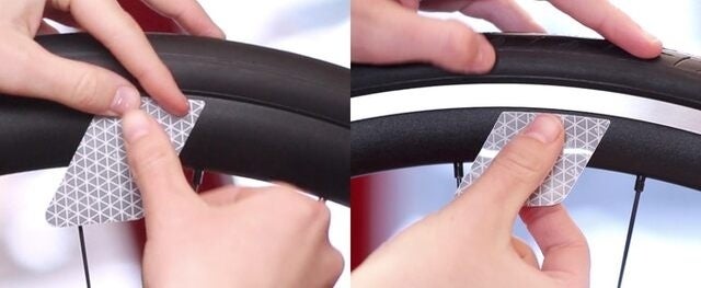 タイヤのリム部分に貼り付ける自転車リフレクターです。
