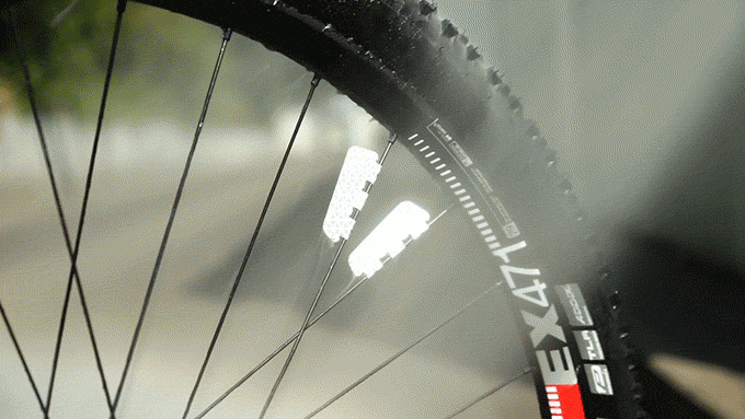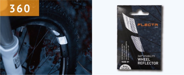 FLECTR(フレクター)は自転車のタイヤのリム、スポークに付けられるどの角度からも明るく照らし出してくれるリフレクターです。