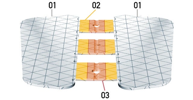 01)反射パネル 02)折り曲げ部分 03)スポーク接着部分