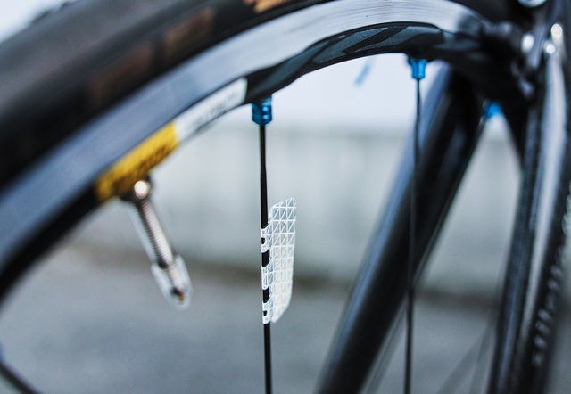 リムに貼りついているので空気抵抗がなく、重さも約0.8gなので重量バランスも偏りません。