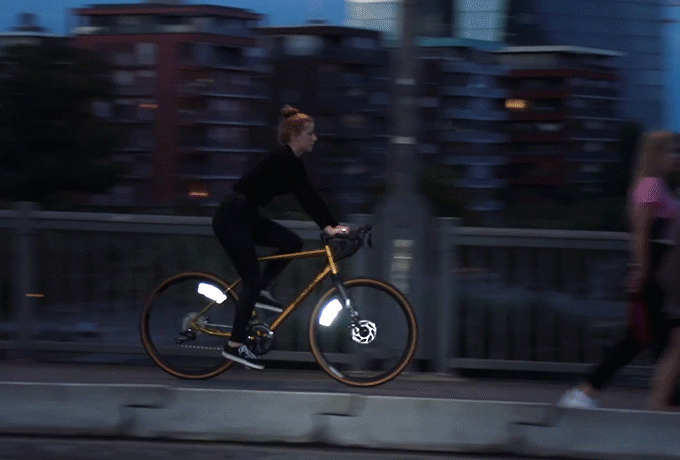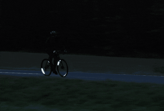 しかしFLECTRは自転車のタイヤのリム、スポークに貼るだけでどの角度から見ても明るく照らし出しドライバーからも確認が取りやすくなります!