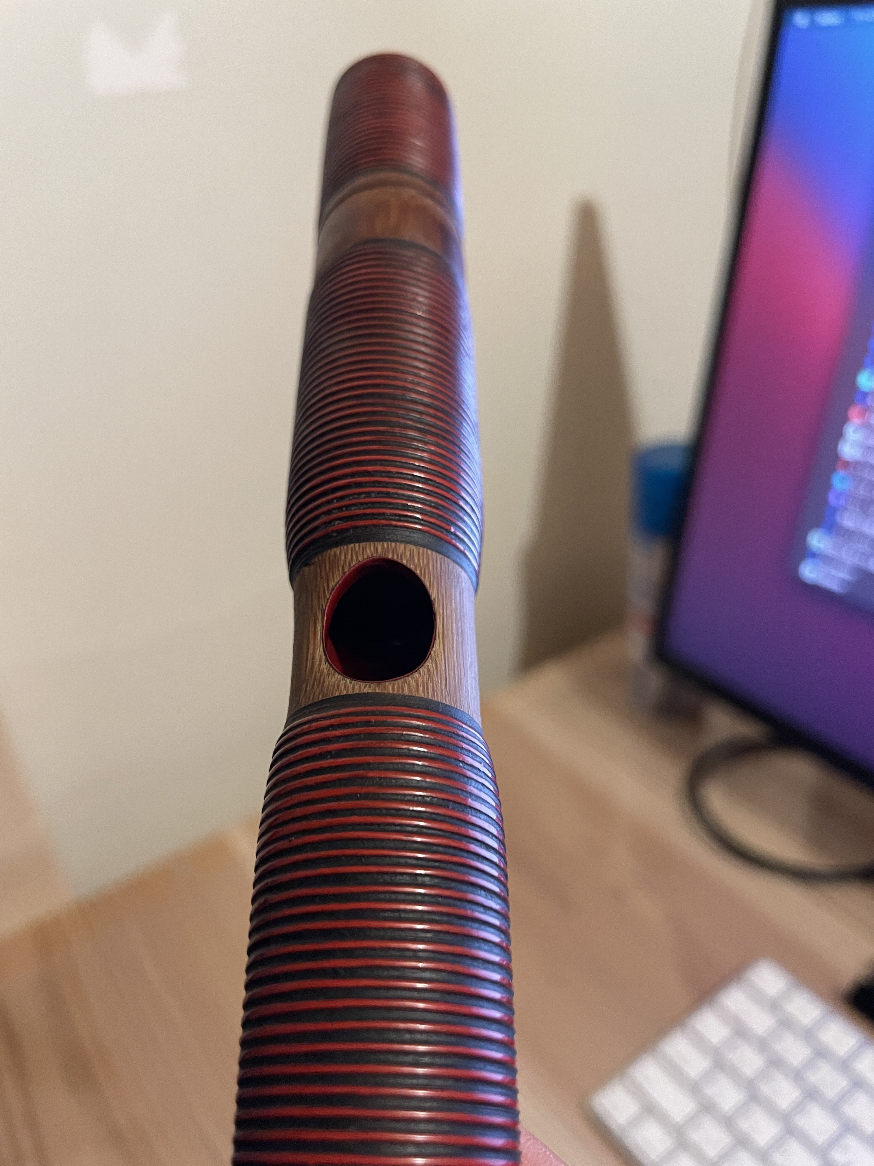 もう15年ほど使っている蘭情管 唄物天地巻八笨調子(いわゆるドレミ音階に近いC管)