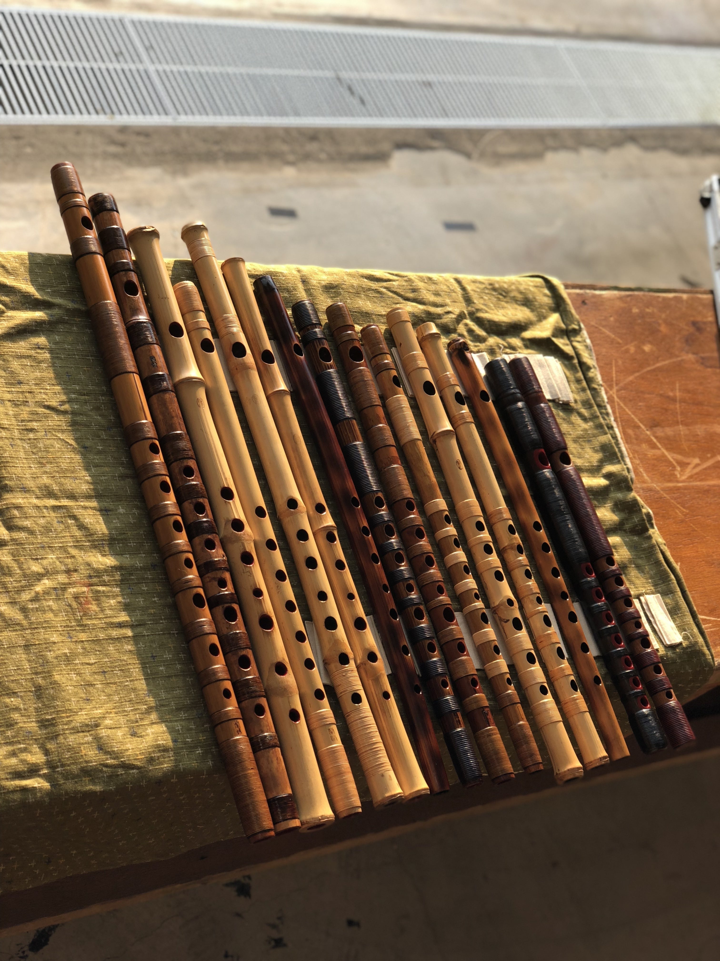 主に篠竹(女竹)に唄口と指孔を開けただけという、とてもシンプルな作りなのですが、日本人の心にすっと入ってくるような、そんな音色を奏でます。