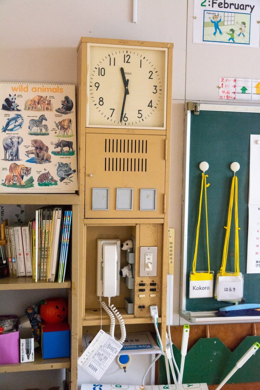 3つ並んだ四角の枠に月・日・曜日を入れ込むシステム。全教室にある