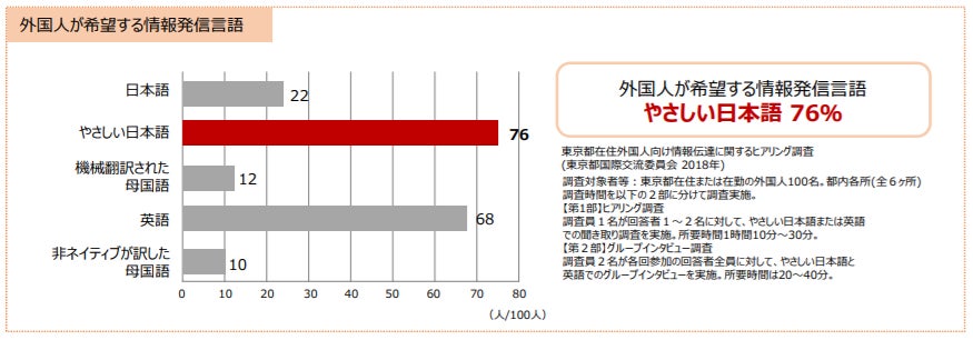 そして、日本に住む 外国人が希望している情報発信言語 第1位は、”やさしい日本語”なんです。
