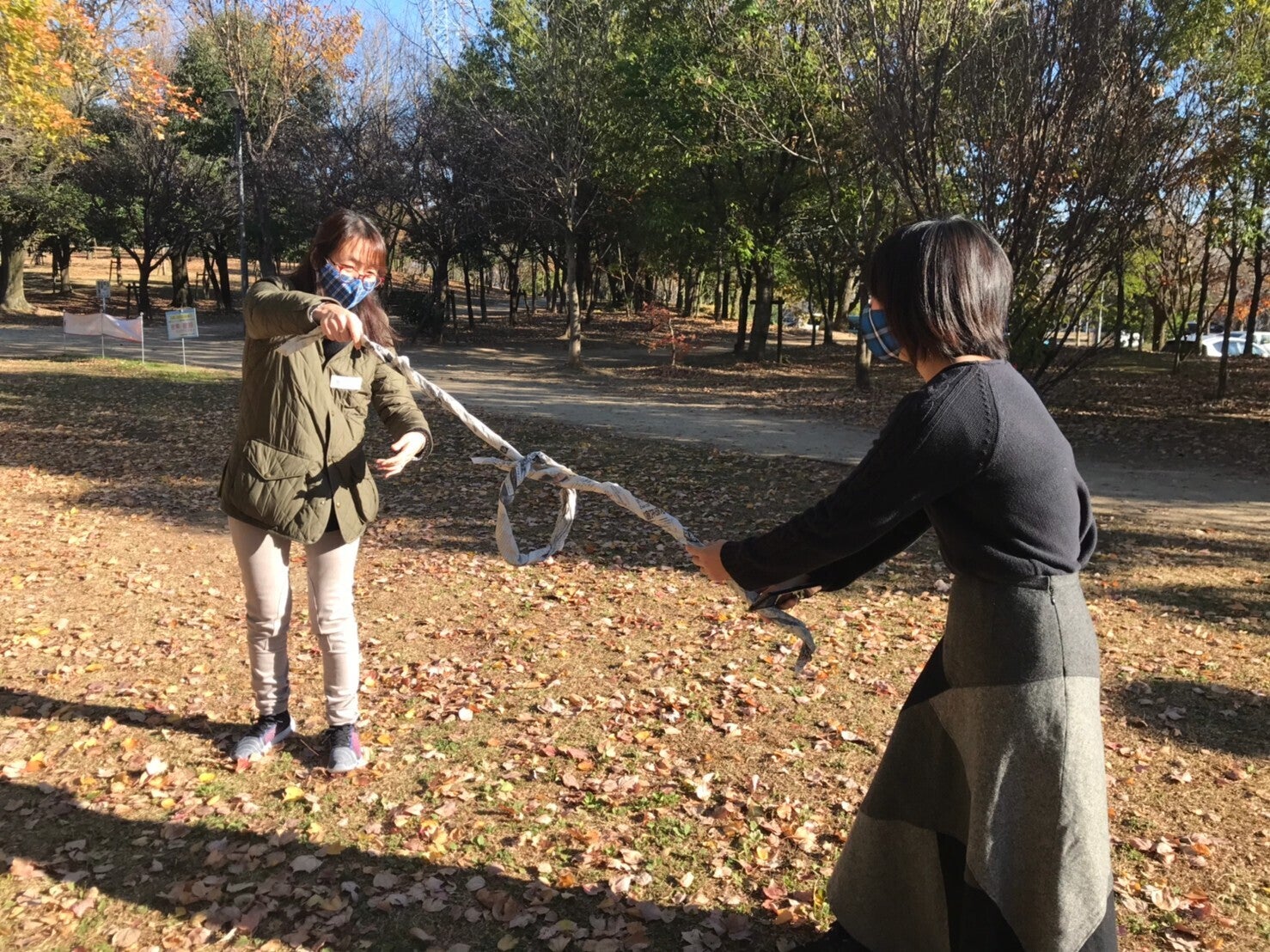 距離をとりながら、”やさしい日本語”だけでルール説明ができるレクリエーションに挑戦しました。