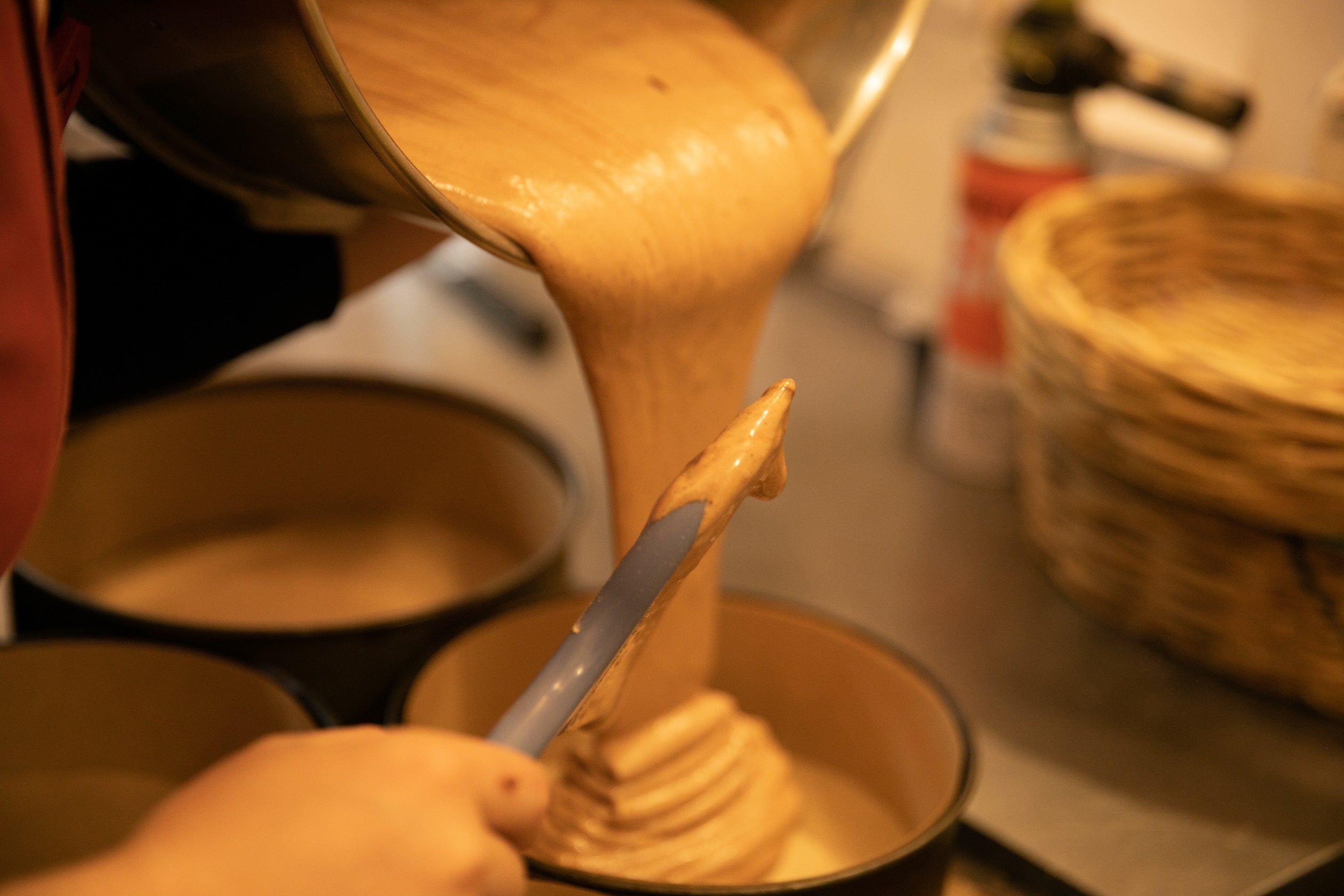 バターたっぷりのリッチなキャラメルにカシューナッツ、ゴボウを混ぜ込んで、ホウレンソウのクッキー生地の上に乗せてオーブンで焼きこみます。ゴボウは香りがとっても良く、そして他の素材を合わせてもしっかりとその香りと風味を出してくれます。なので、キャラメルのような強いお菓子と合わせても、ちゃんとゴボウの存在感があるんです。土っぽい味は、キャラメリゼすることによって消えているので、ナッツの香ばしさとキャラメルの濃厚さ、ゴボウの香りが共存したまさにココアイならではの野菜スイーツ!