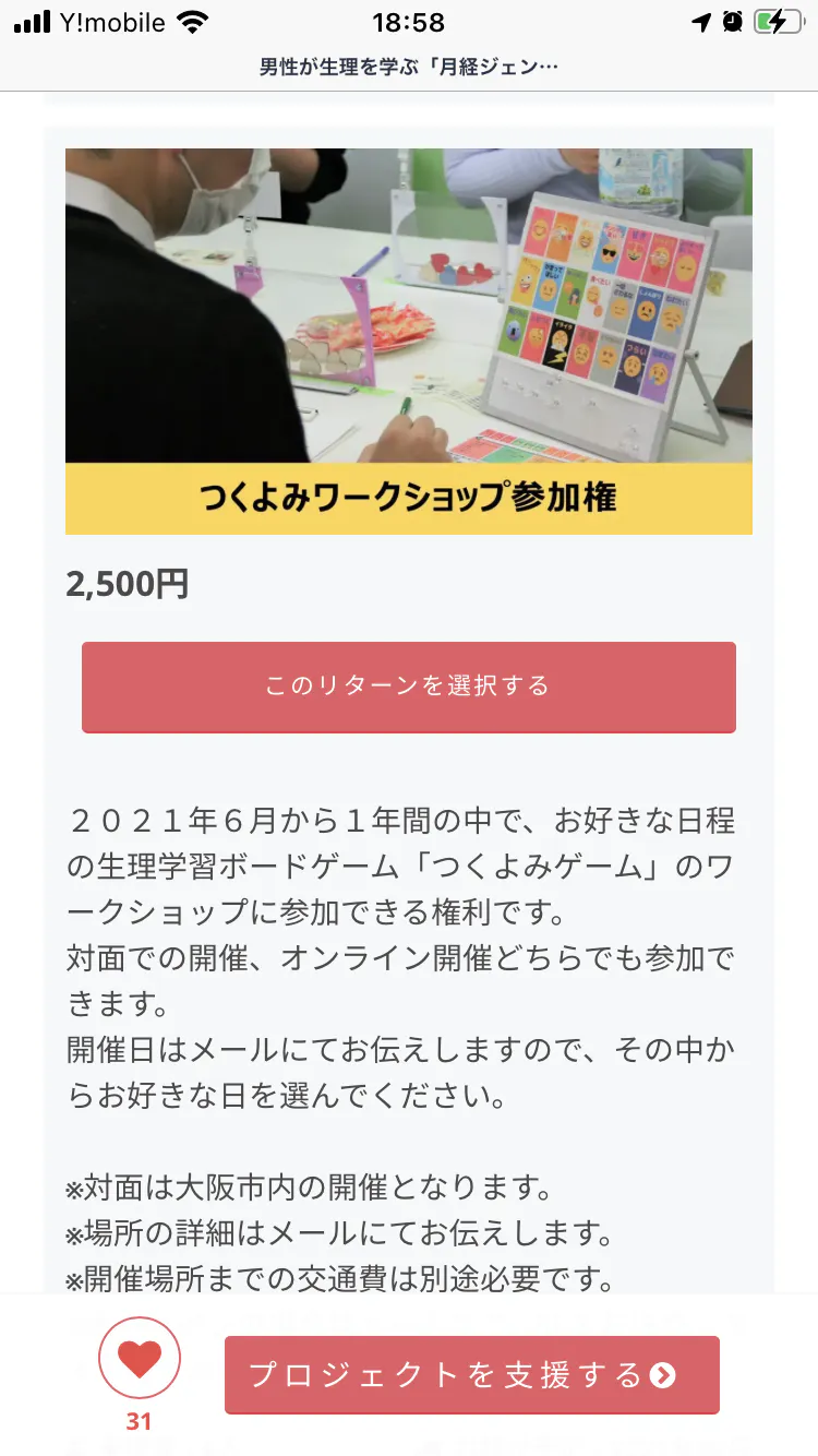予定の合わない方向けに2021年6月〜1年間有効なゲームワークショップへの参加チケットをリターンに加えました。