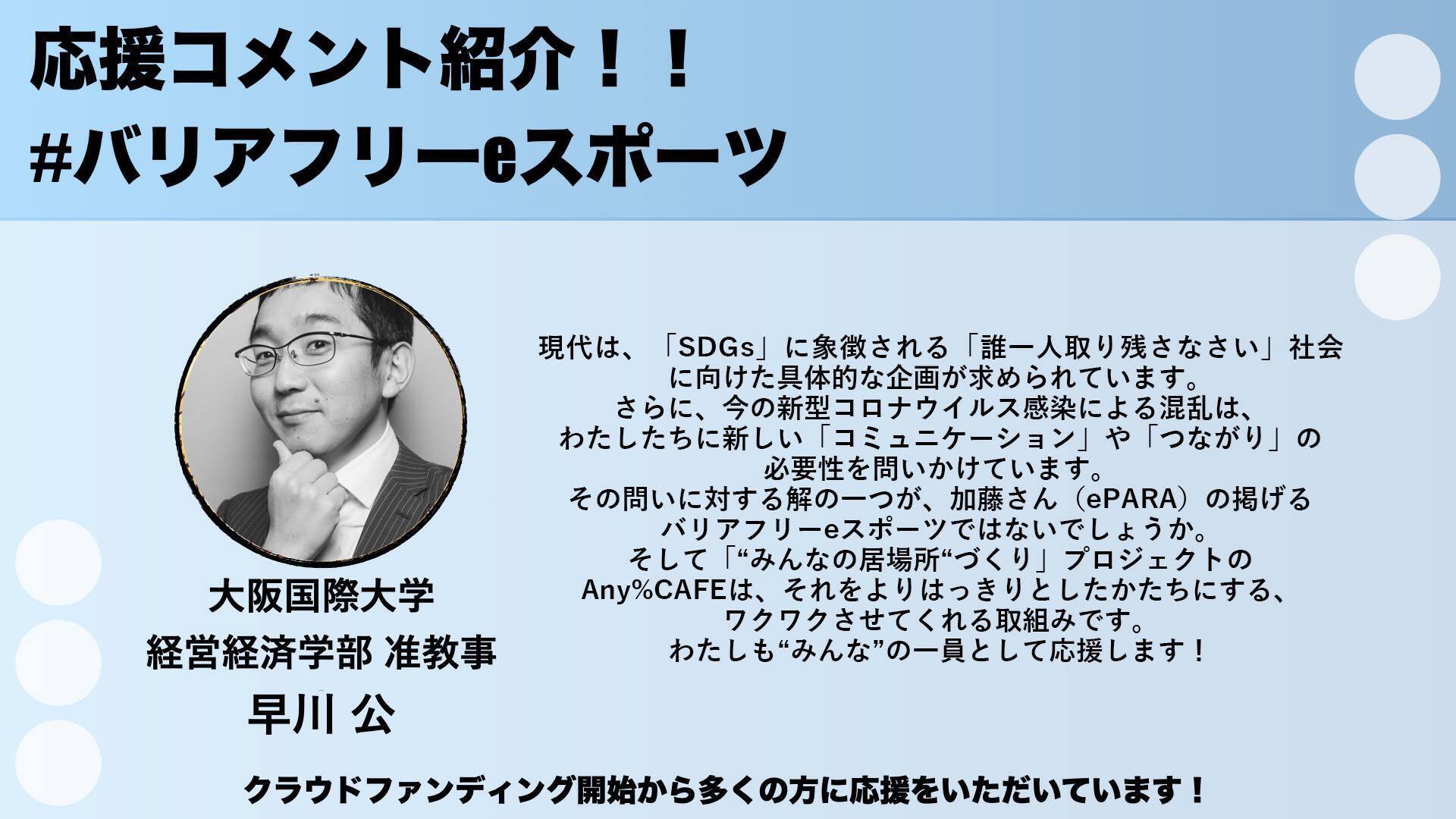 大阪国際大学経営経済学部 准教授 早川 公さんより応援メッセージをいただきました!!
