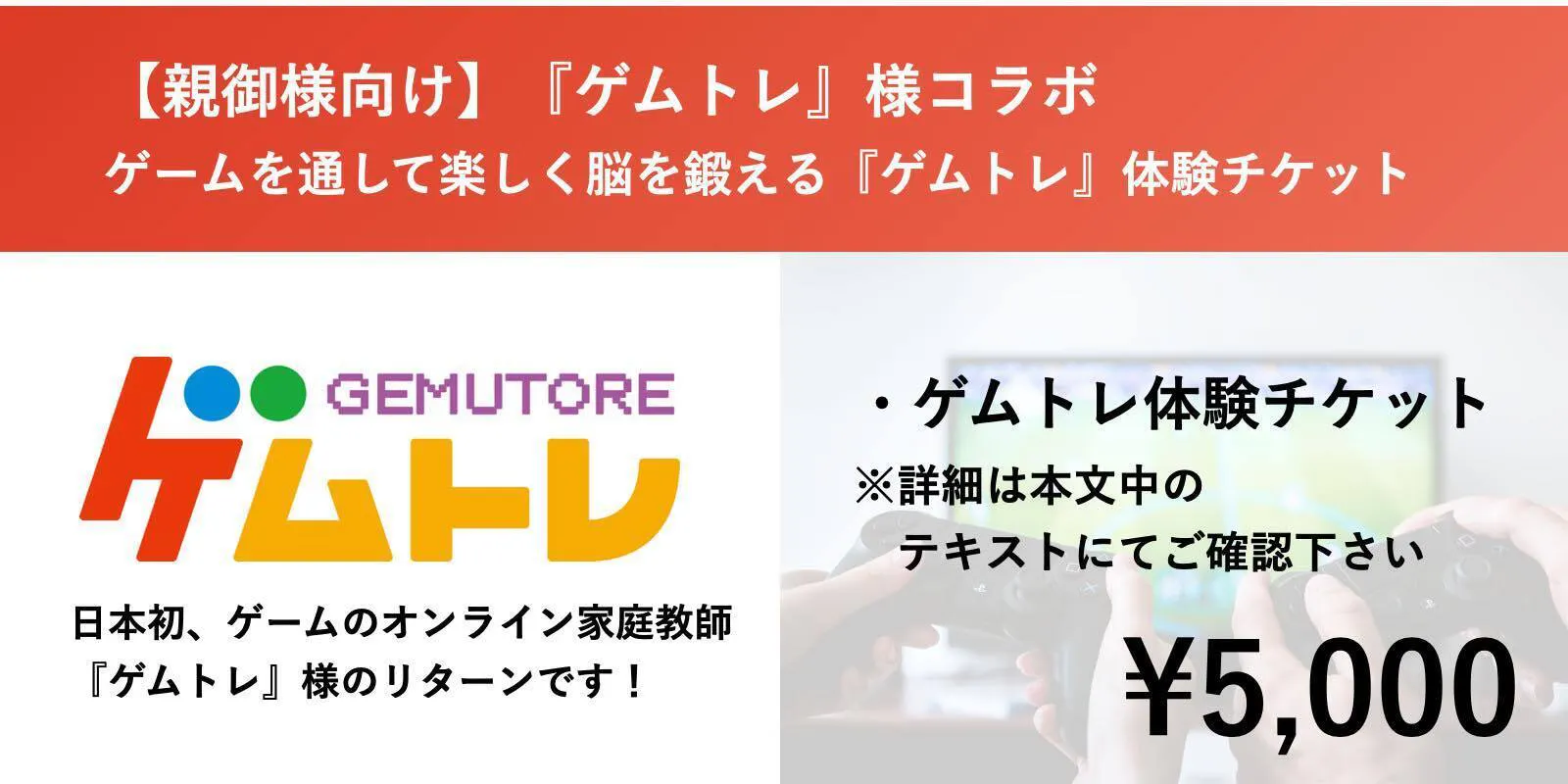 日本初、ゲームのオンライン家庭教師『ゲムトレ』を1回体験できます!!