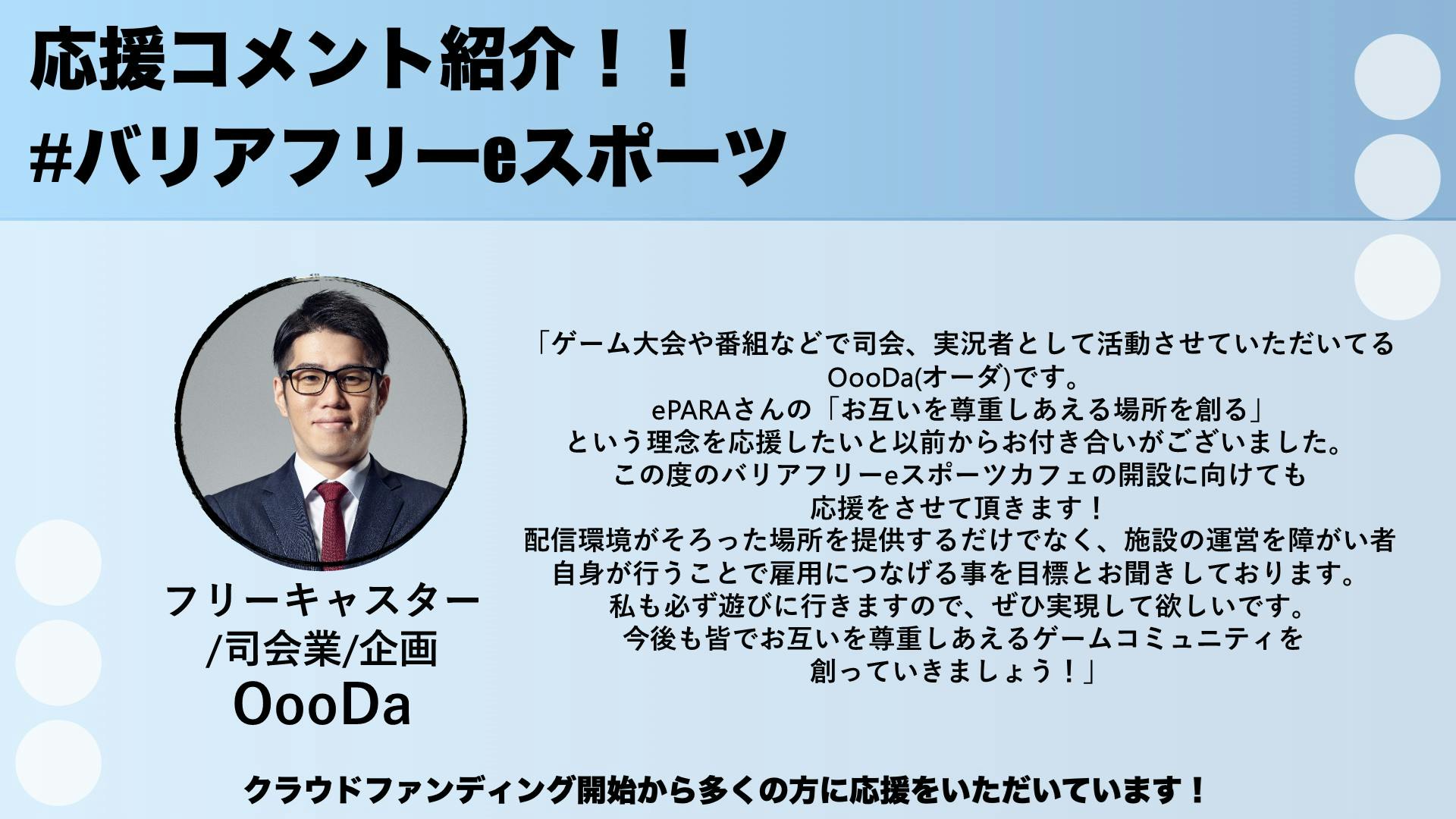 「ゲーム大会や番組などで司会、実況者として活動させていただいてるOooDa(オーダ)です。